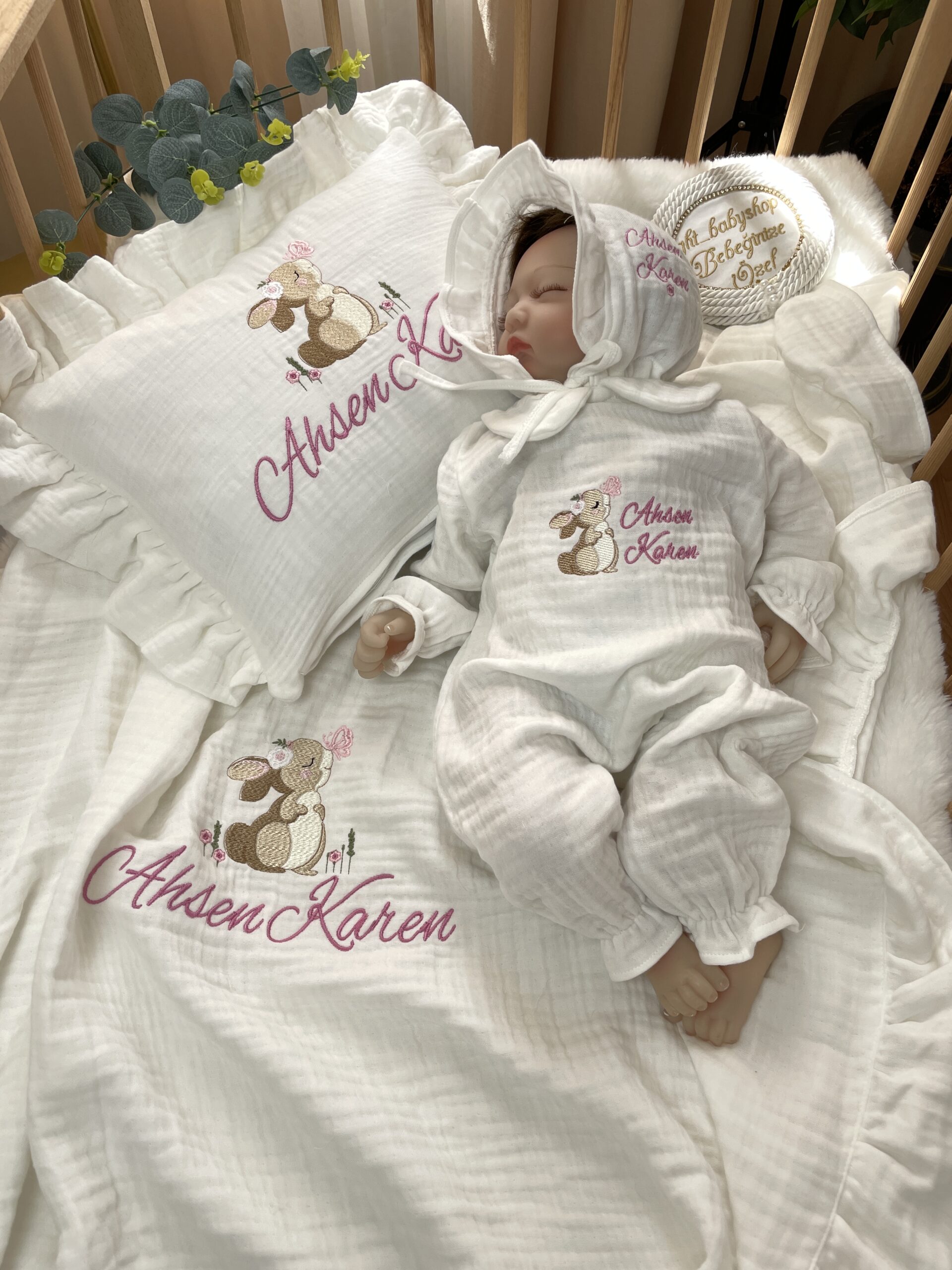 İlk yorum yapan siz olun “Tavşan işlemeli müslin 4lü set”