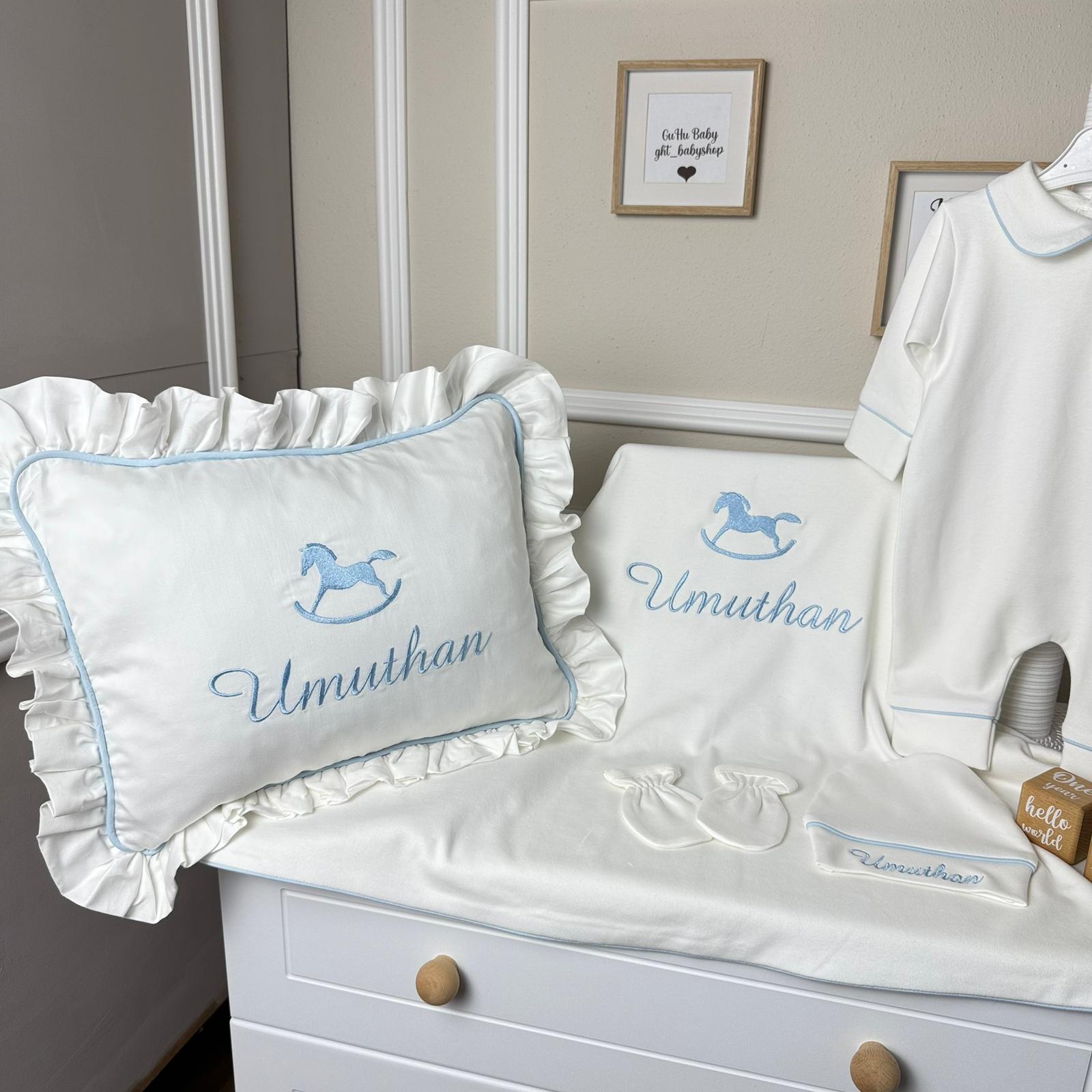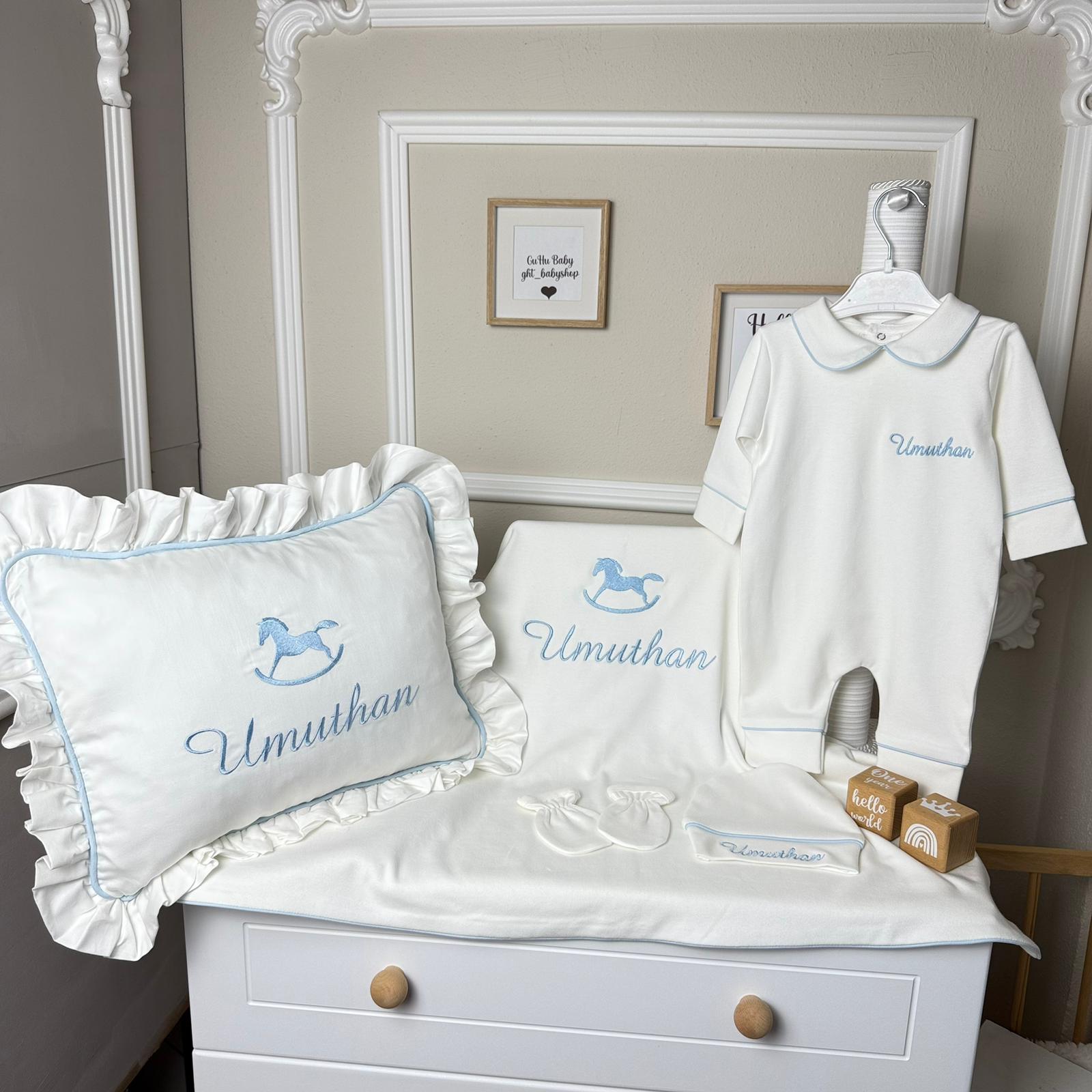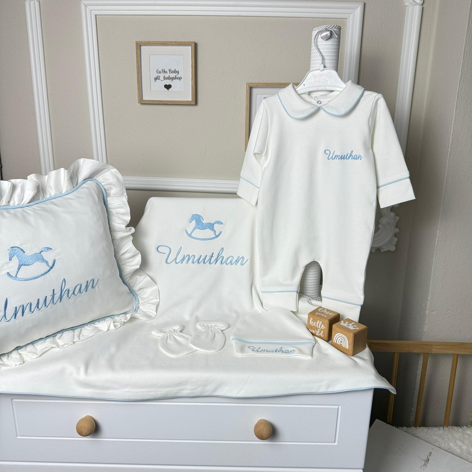 Hastane Çıkışı Seti, bebeğinizin ilk günlerinde ihtiyaç duyduğu parçaları bir araya getirir. Konforlu, şık ve kullanıma hazırdır.