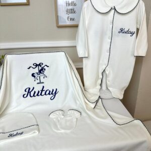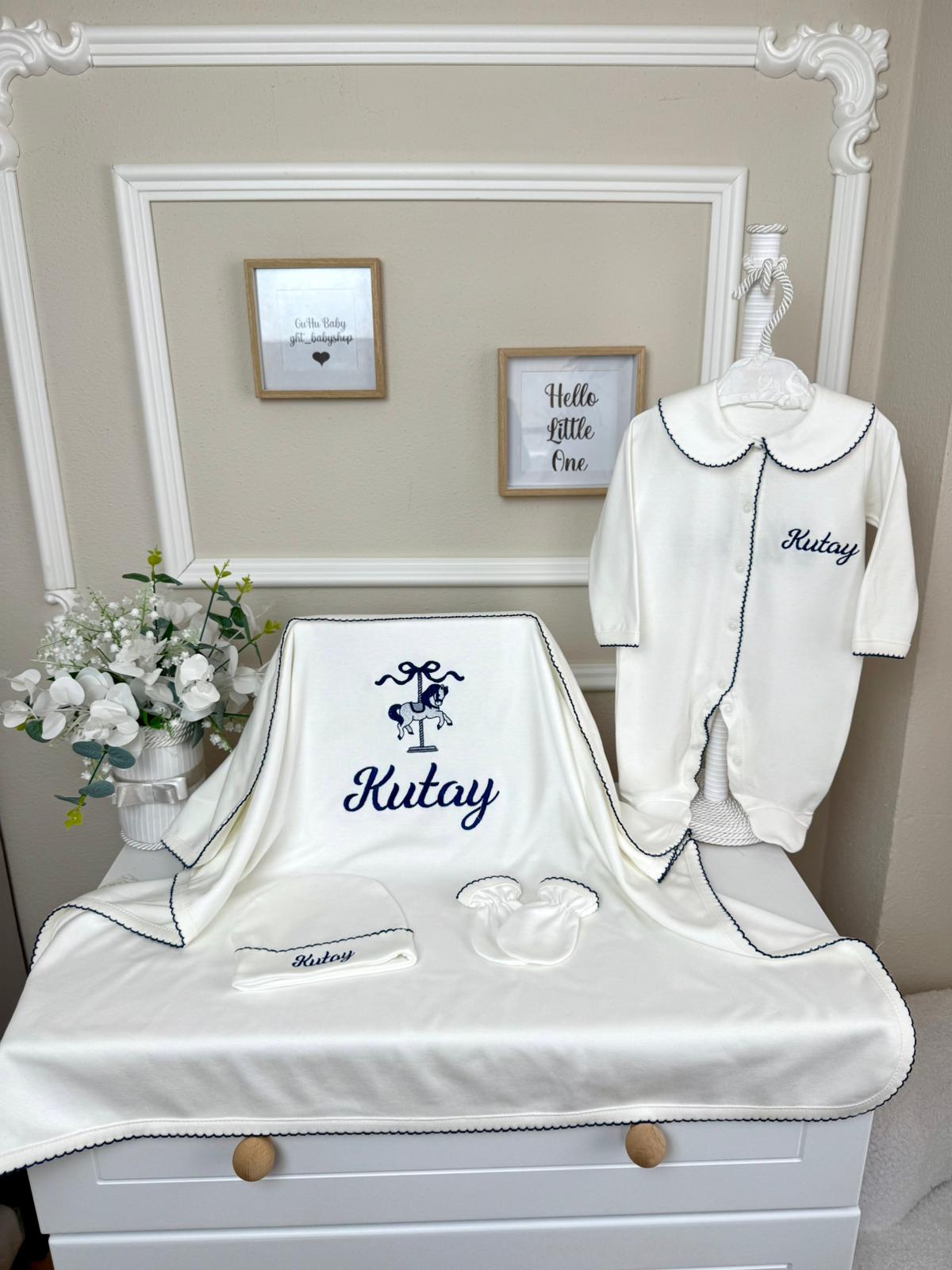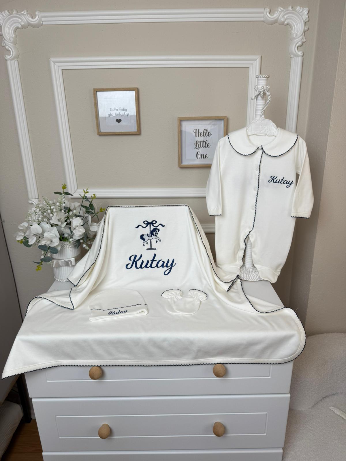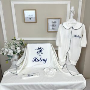 Hastane Çıkışı Seti, bebeğinizin ilk günlerinde ihtiyaç duyduğu parçaları bir araya getirir. Konforlu, şık ve kullanıma hazırdır.