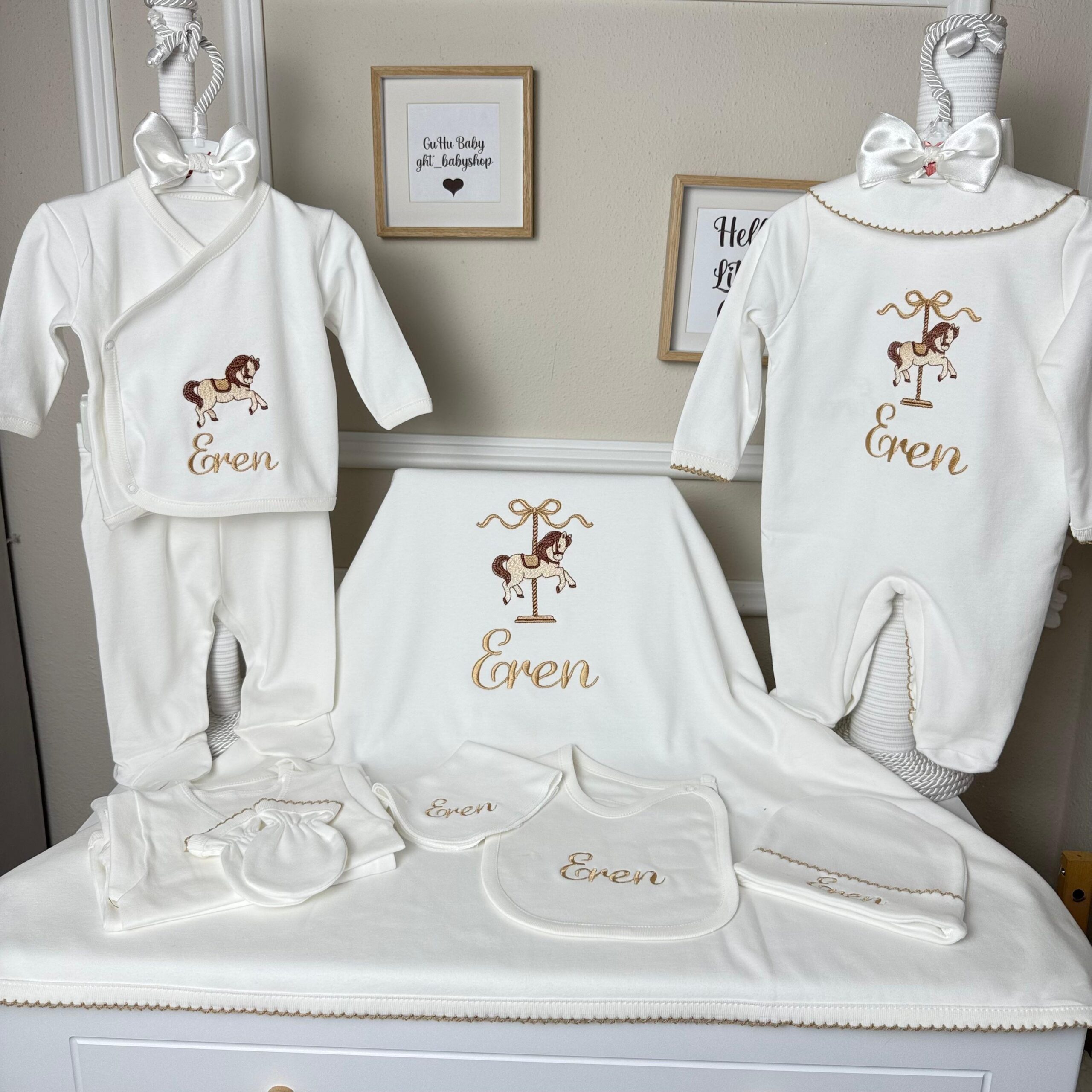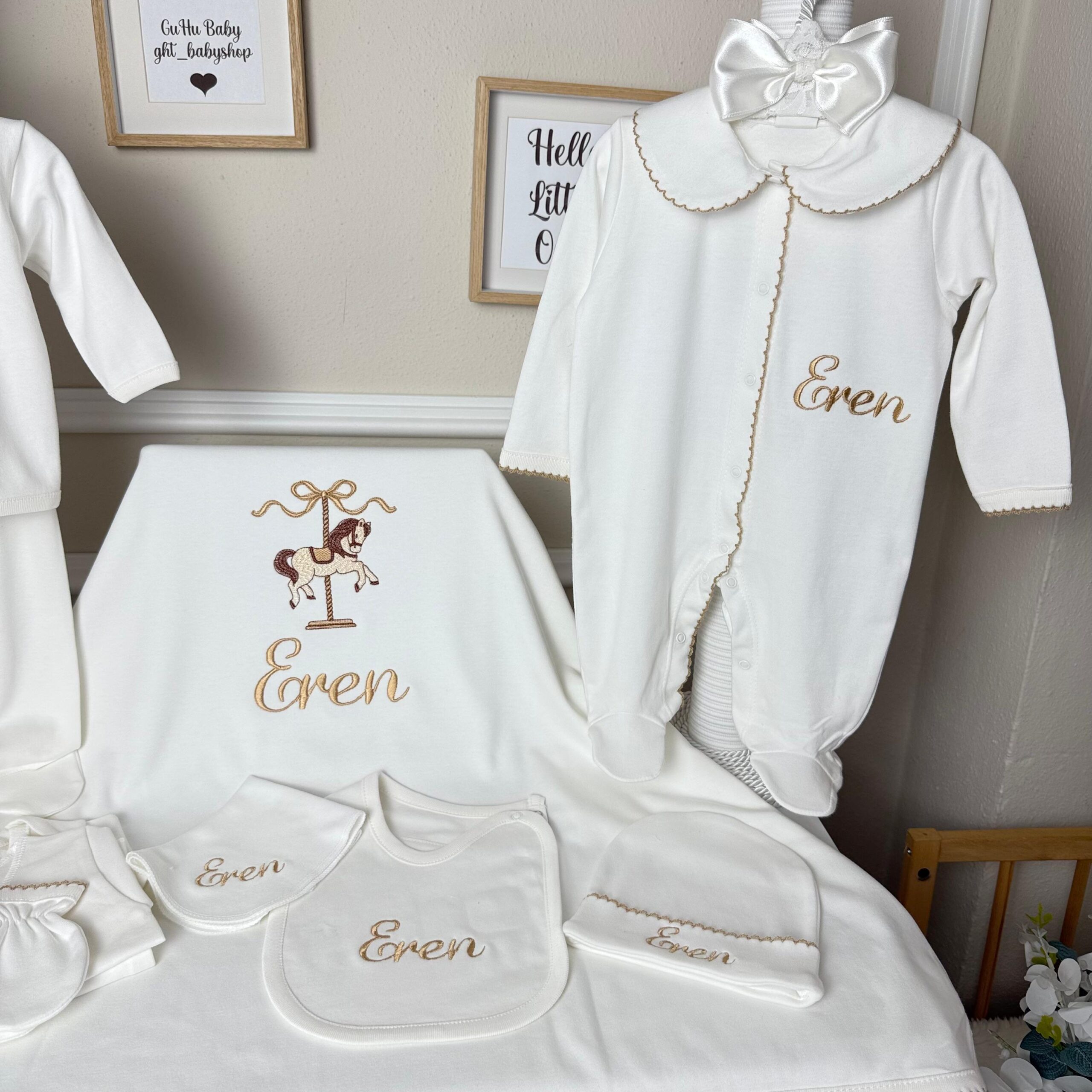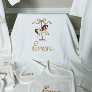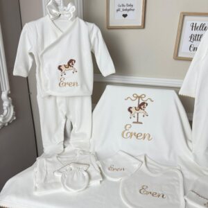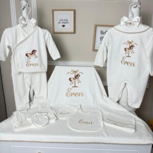 Hastane Çıkışı Seti, bebeğinizin ilk günlerinde ihtiyaç duyduğu parçaları bir araya getirir. Konforlu, şık ve kullanıma hazırdır.
