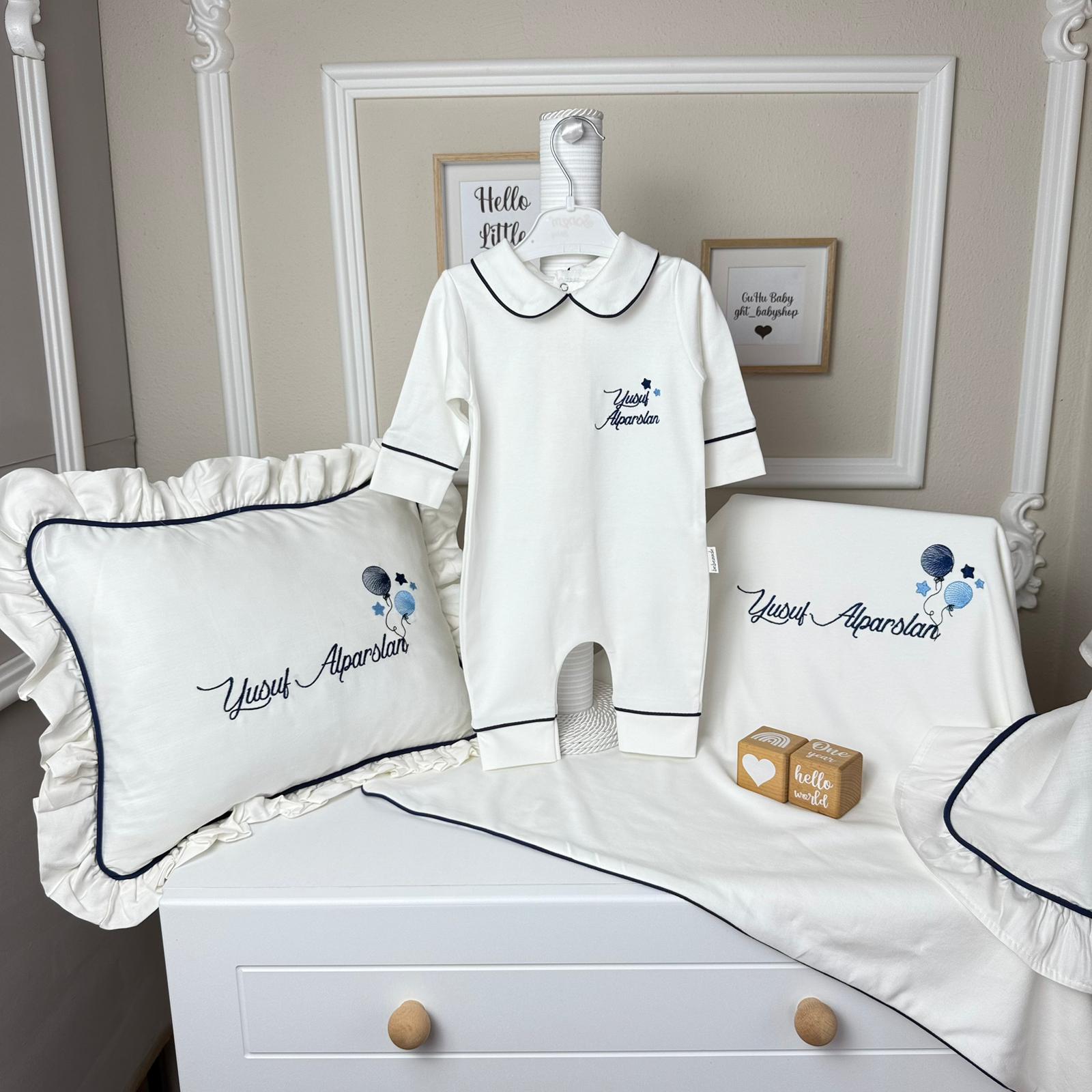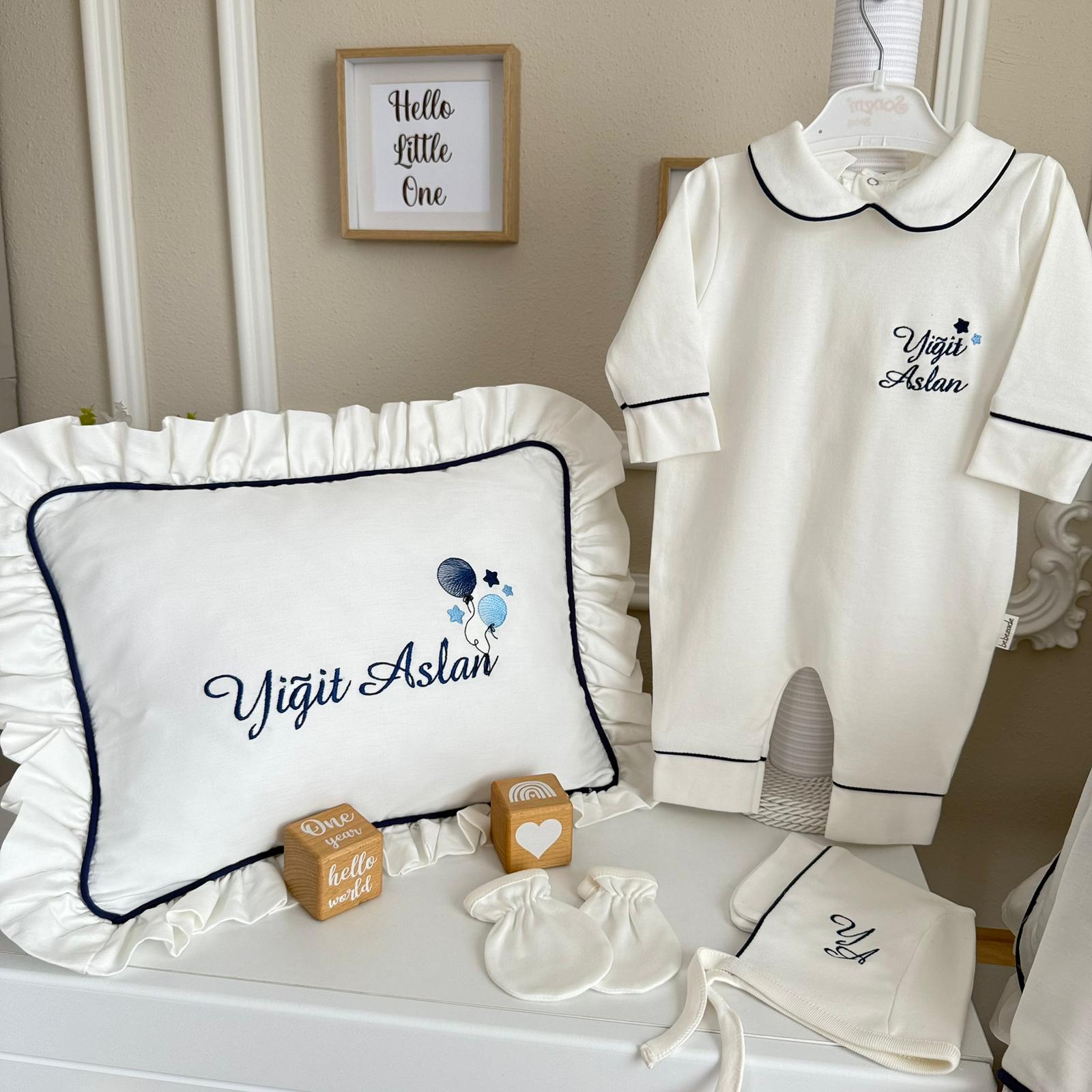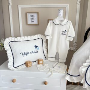 Hastane Çıkışı Seti, bebeğinizin ilk günlerinde ihtiyaç duyduğu parçaları bir araya getirir. Konforlu, şık ve kullanıma hazırdır.