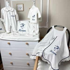Hastane Çıkışı Seti, bebeğinizin ilk günlerinde ihtiyaç duyduğu parçaları bir araya getirir. Konforlu, şık ve kullanıma hazırdır.
