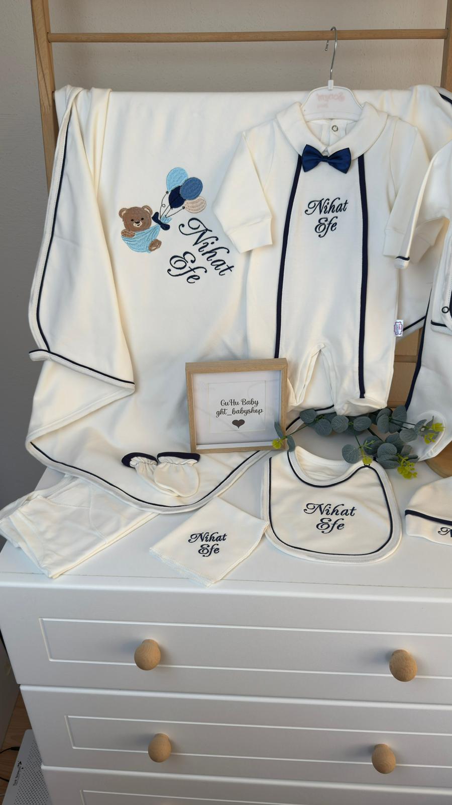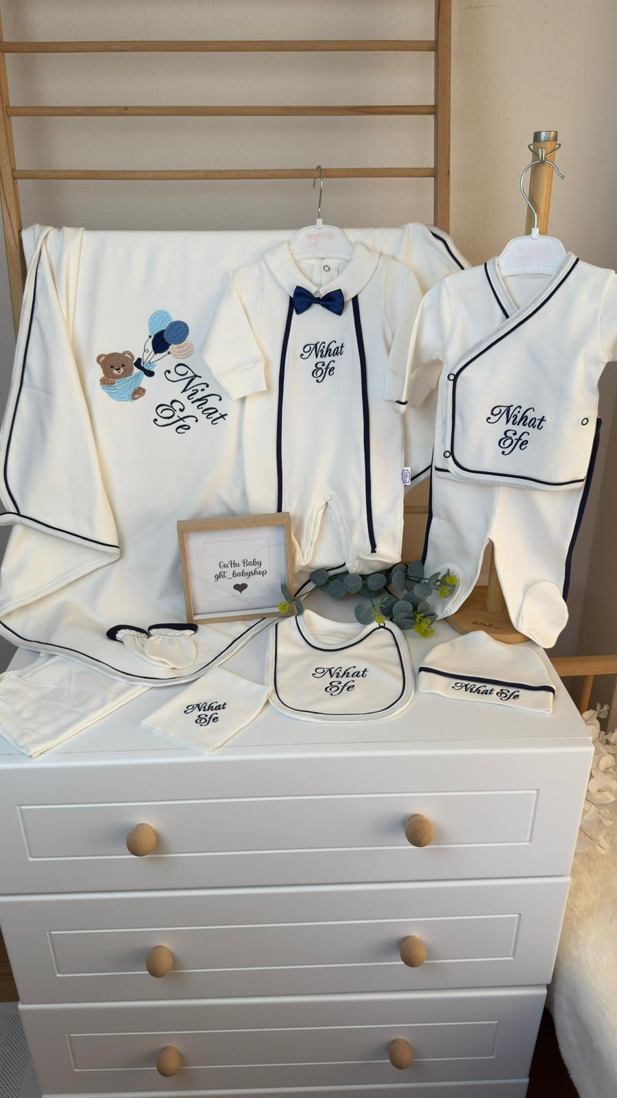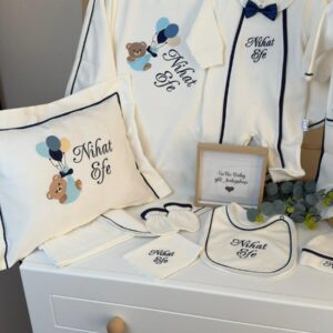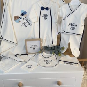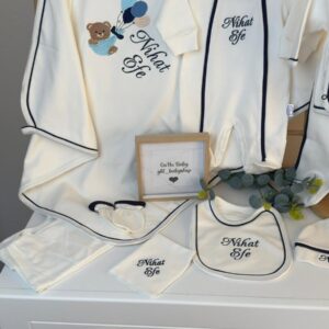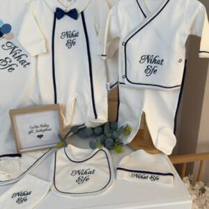 Hastane Çıkışı Seti, bebeğinizin ilk günlerinde ihtiyaç duyduğu parçaları bir araya getirir. Konforlu, şık ve kullanıma hazırdır.