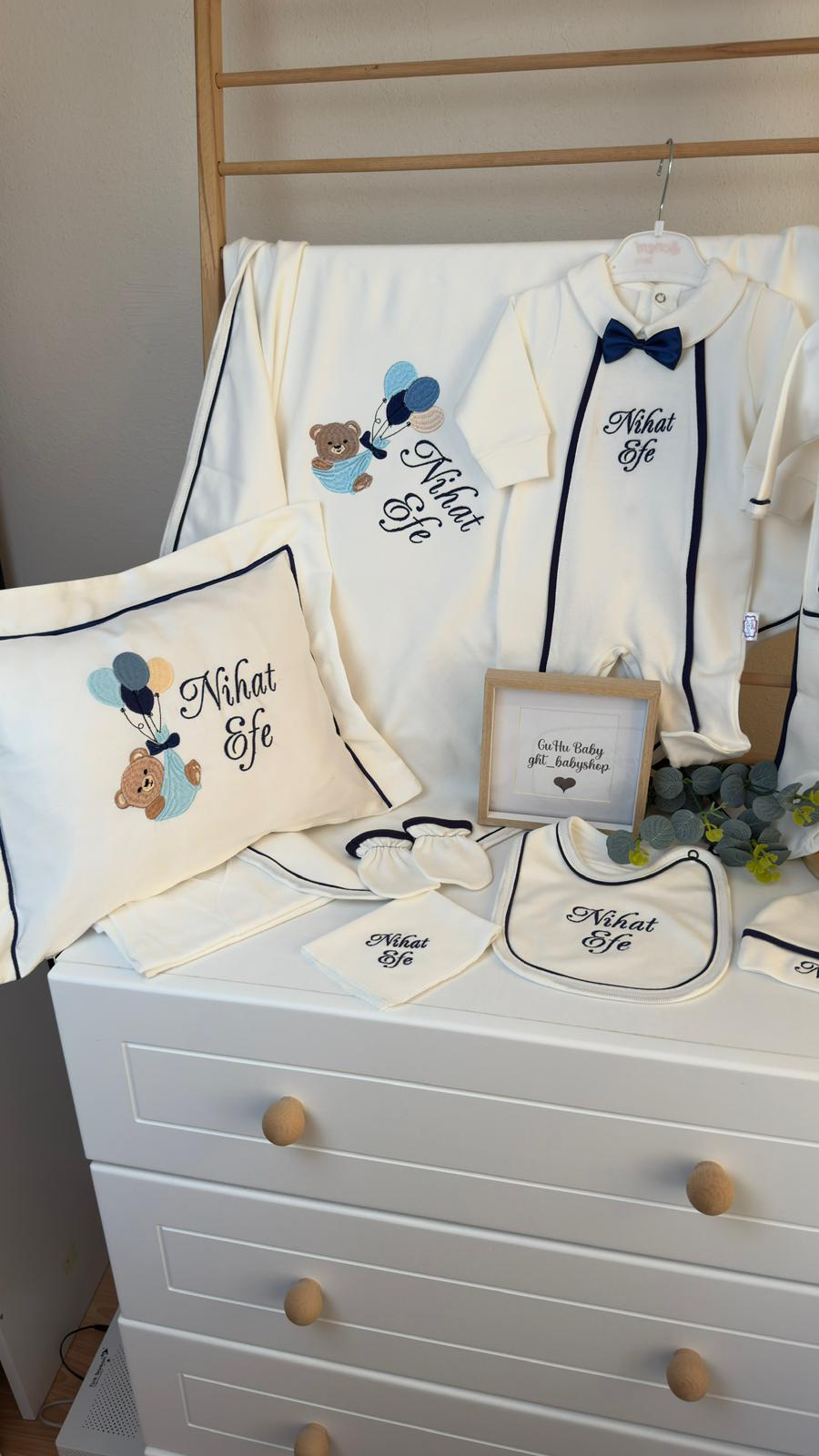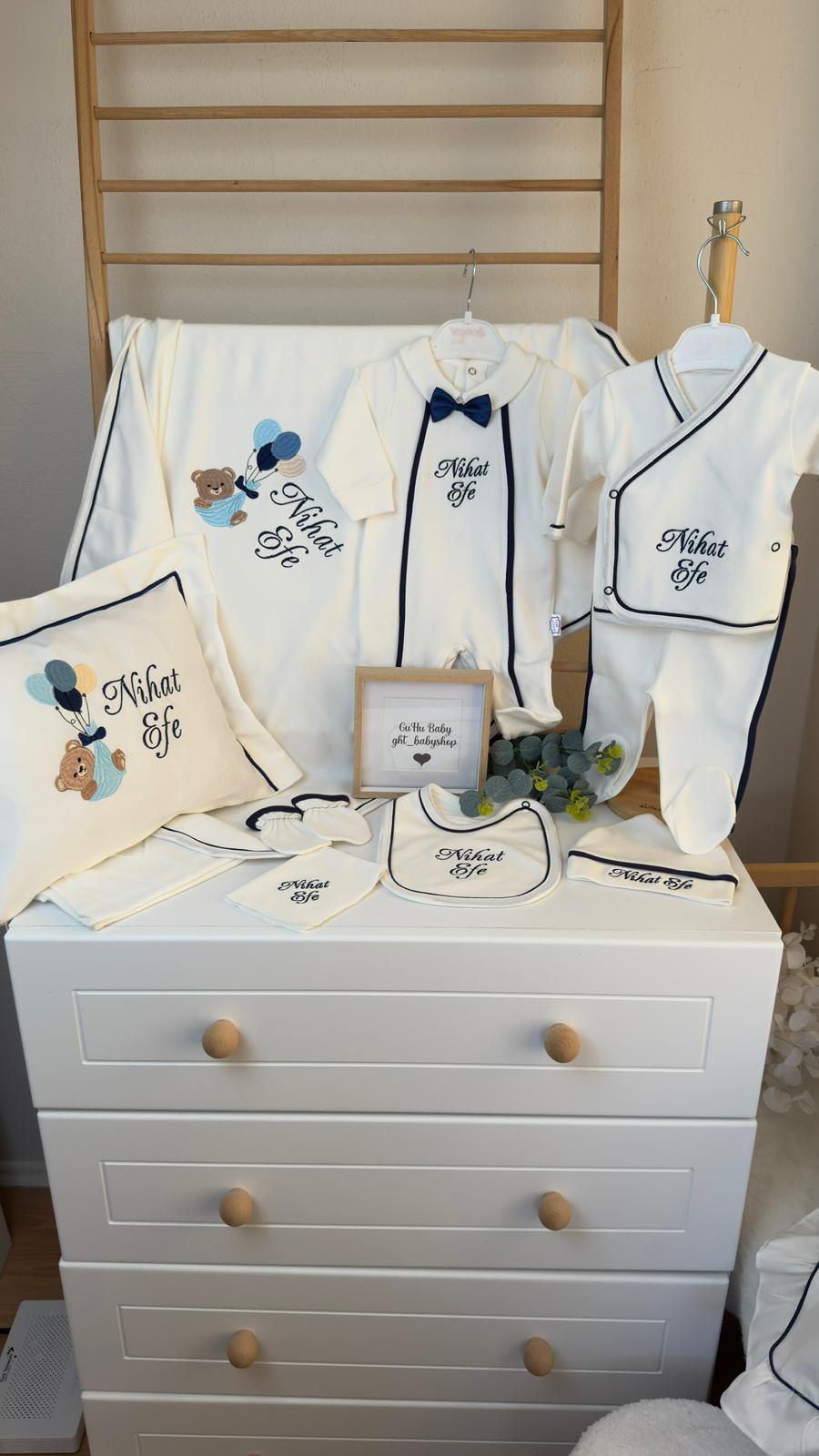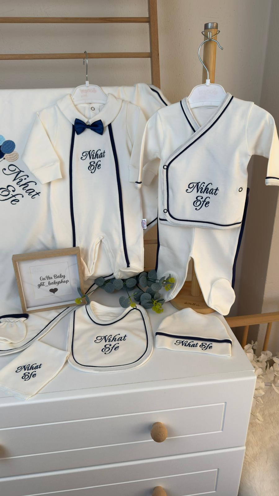 Hastane Çıkışı Seti, bebeğinizin ilk günlerinde ihtiyaç duyduğu parçaları bir araya getirir. Konforlu, şık ve kullanıma hazırdır.