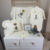 Hastane Çıkışı Seti, bebeğinizin ilk günlerinde ihtiyaç duyduğu parçaları bir araya getirir. Konforlu, şık ve kullanıma hazırdır.