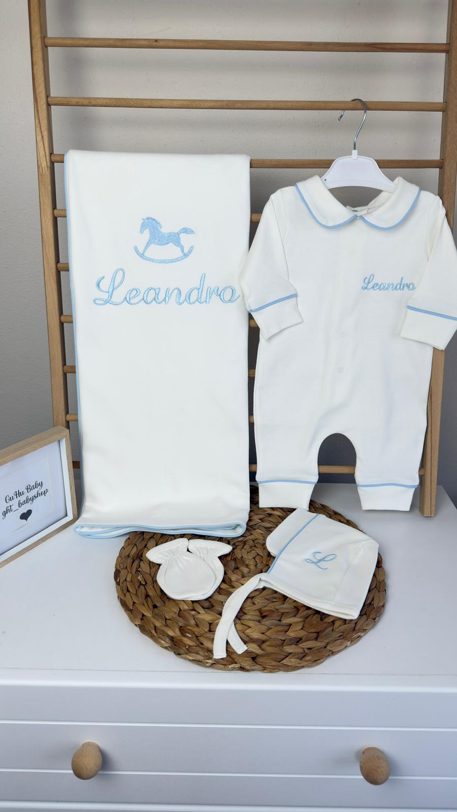 Hastane Çıkışı Seti, bebeğinizin ilk günlerinde ihtiyaç duyduğu parçaları bir araya getirir. Konforlu, şık ve kullanıma hazırdır.