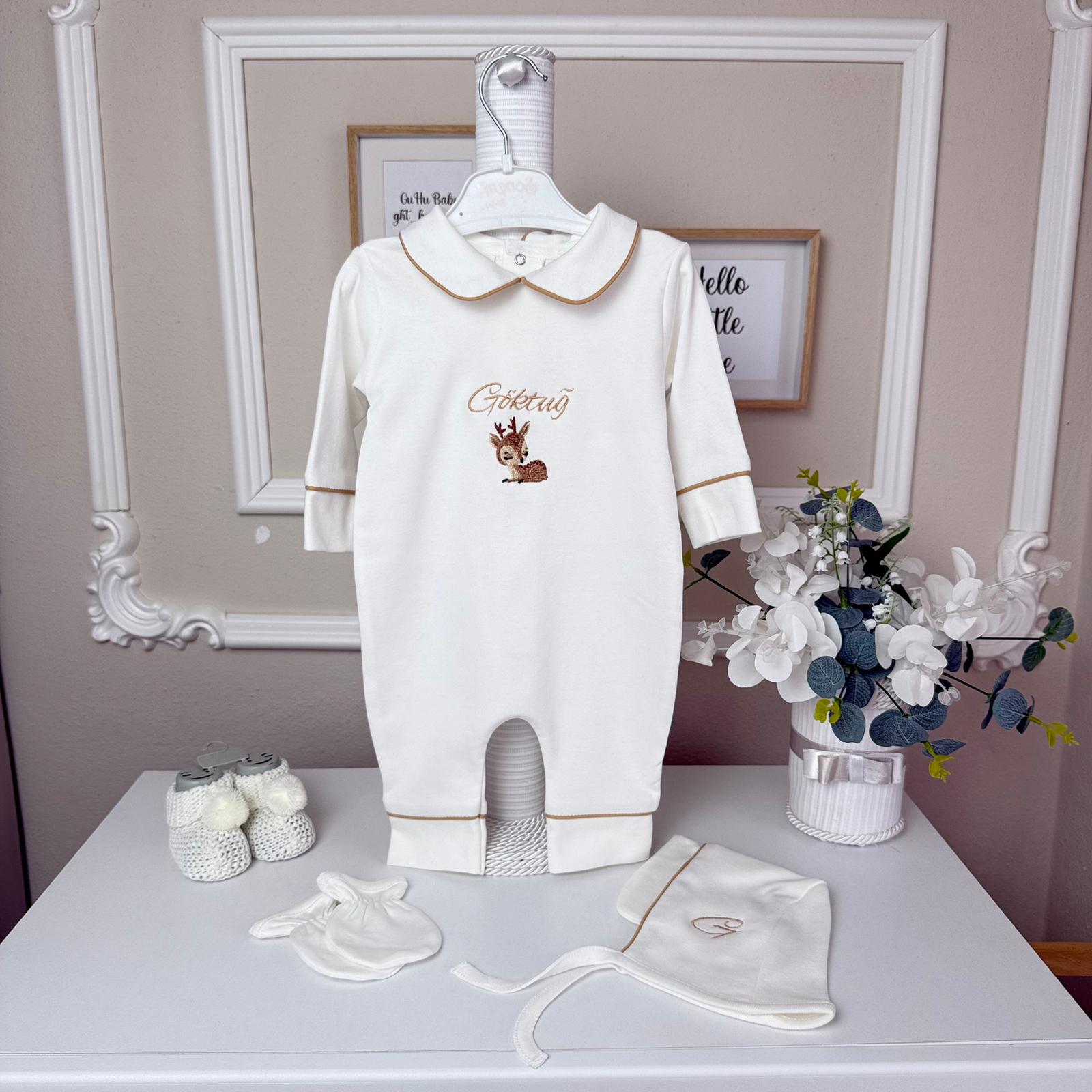Hastane Çıkışı Seti, bebeğinizin ilk günlerinde ihtiyaç duyduğu parçaları bir araya getirir. Konforlu, şık ve kullanıma hazırdır.