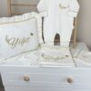 Hastane Çıkışı Seti, bebeğinizin ilk günlerinde ihtiyaç duyduğu parçaları bir araya getirir. Konforlu, şık ve kullanıma hazırdır.