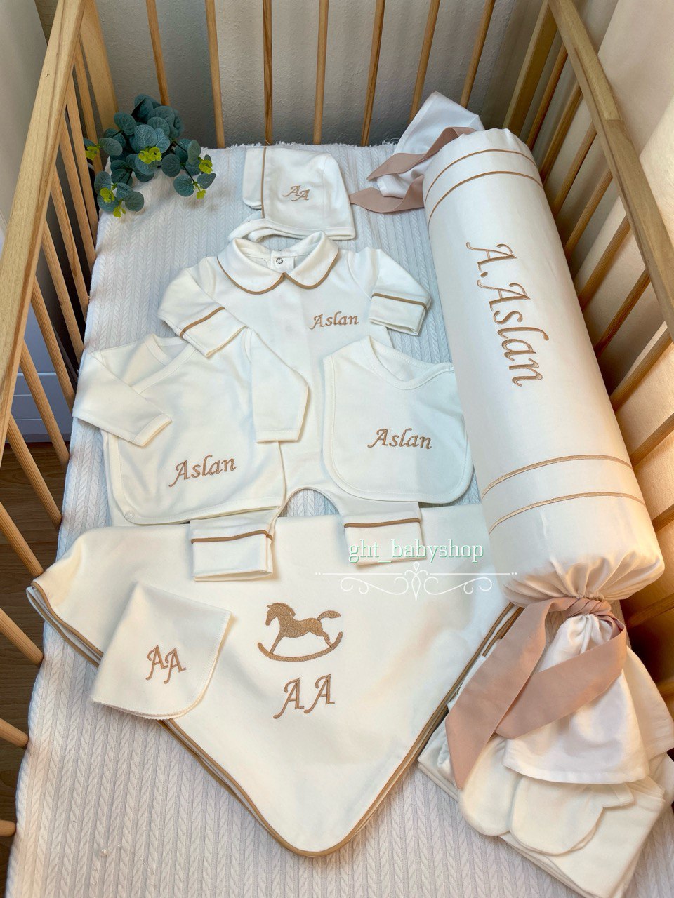 Hastane Çıkışı Seti, bebeğinizin ilk günlerinde ihtiyaç duyduğu parçaları bir araya getirir. Konforlu, şık ve kullanıma hazırdır.