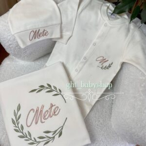 Hastane Çıkışı Seti, bebeğinizin ilk günlerinde ihtiyaç duyduğu parçaları bir araya getirir. Konforlu, şık ve kullanıma hazırdır.