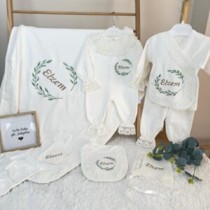 Hastane Çıkışı Seti, bebeğinizin ilk günlerinde ihtiyaç duyduğu parçaları bir araya getirir. Konforlu, şık ve kullanıma hazırdır.