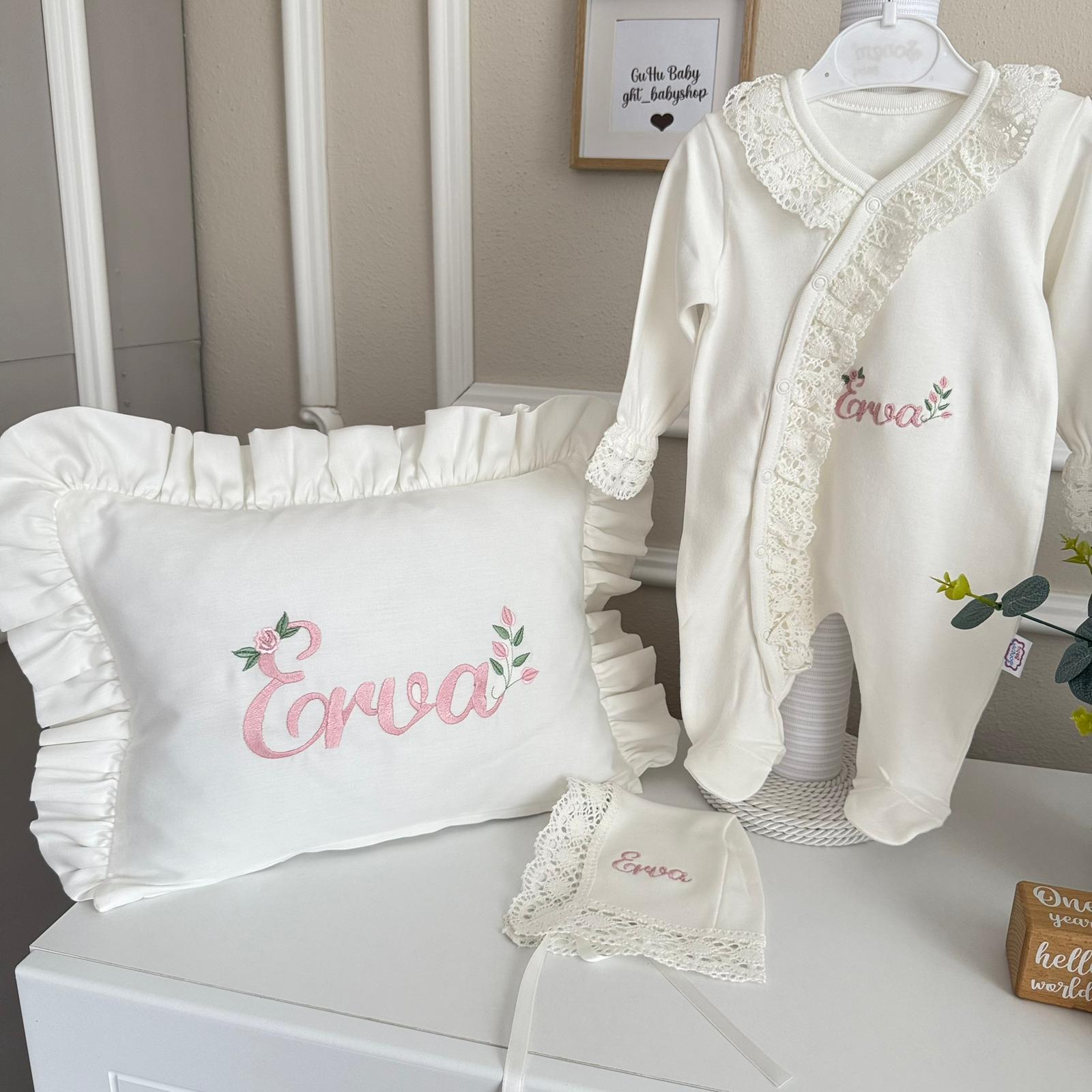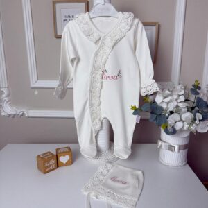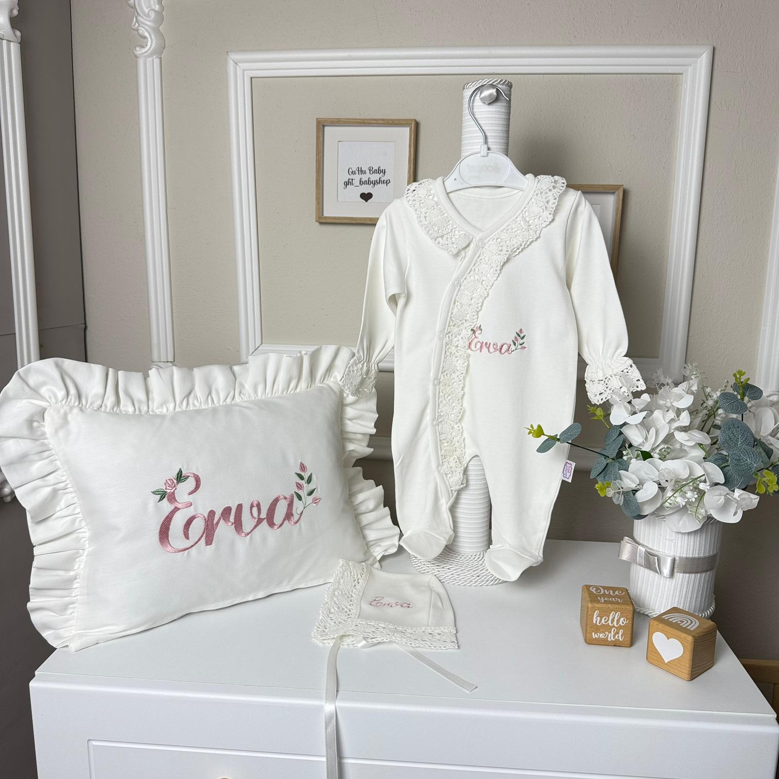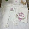 Hastane Çıkışı Seti, bebeğinizin ilk günlerinde ihtiyaç duyduğu parçaları bir araya getirir. Konforlu, şık ve kullanıma hazırdır.