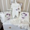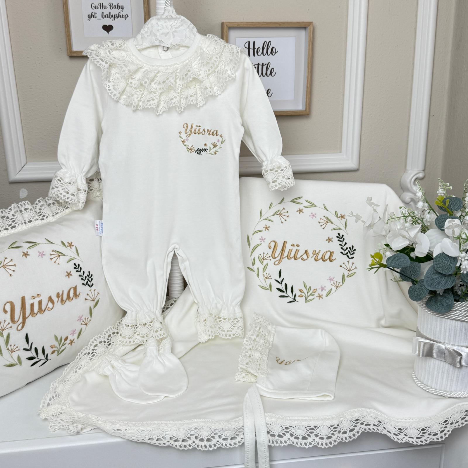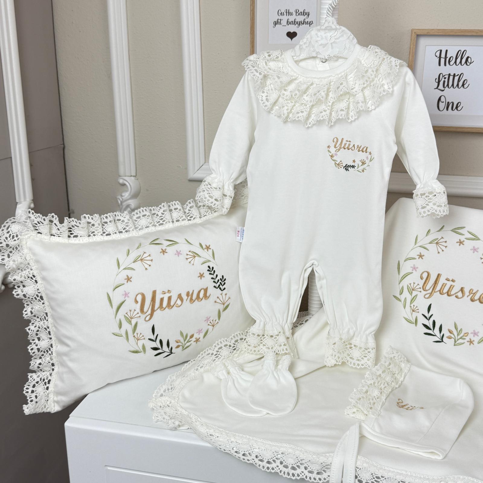 Hastane Çıkışı Seti, bebeğinizin ilk günlerinde ihtiyaç duyduğu parçaları bir araya getirir. Konforlu, şık ve kullanıma hazırdır.