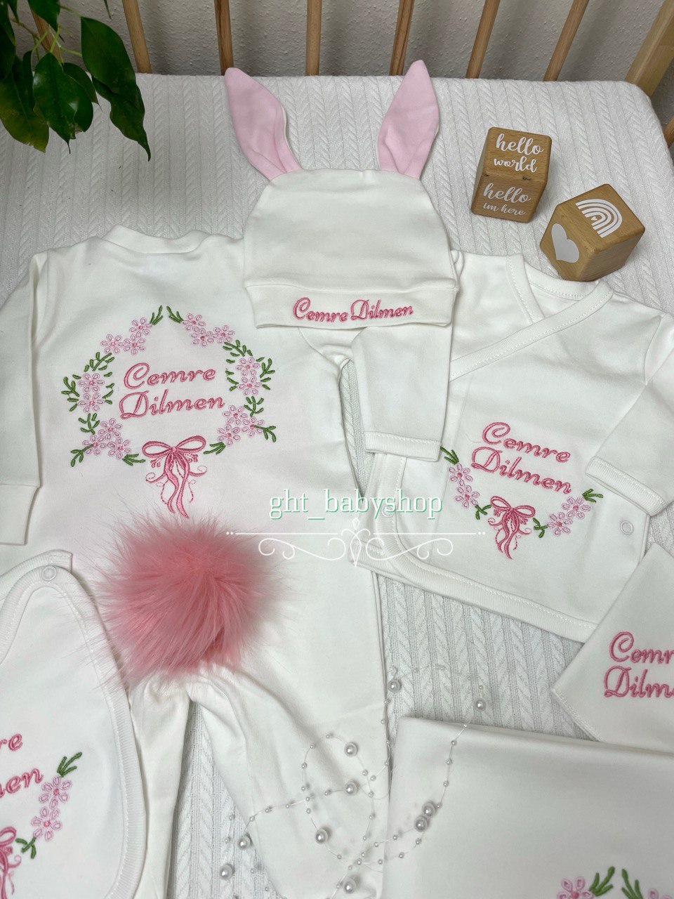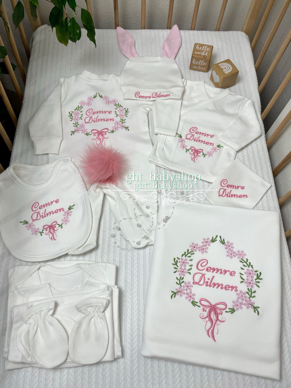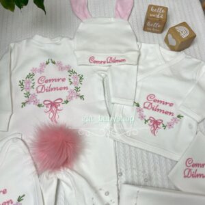 Hastane Çıkışı Seti, bebeğinizin ilk günlerinde ihtiyaç duyduğu parçaları bir araya getirir. Konforlu, şık ve kullanıma hazırdır.
