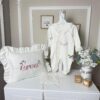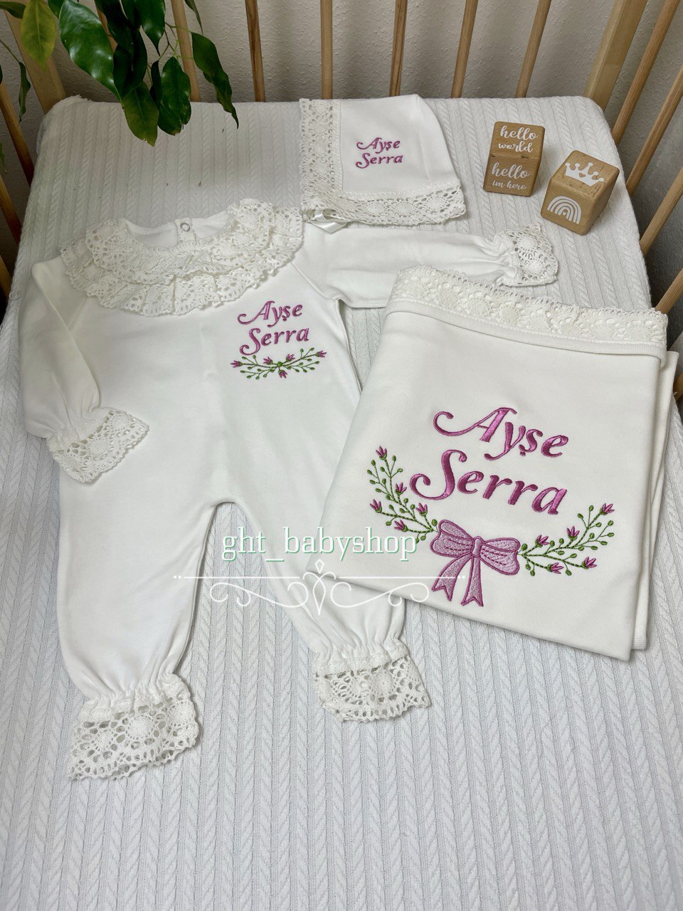 Hastane Çıkışı Seti, bebeğinizin ilk günlerinde ihtiyaç duyduğu parçaları bir araya getirir. Konforlu, şık ve kullanıma hazırdır.