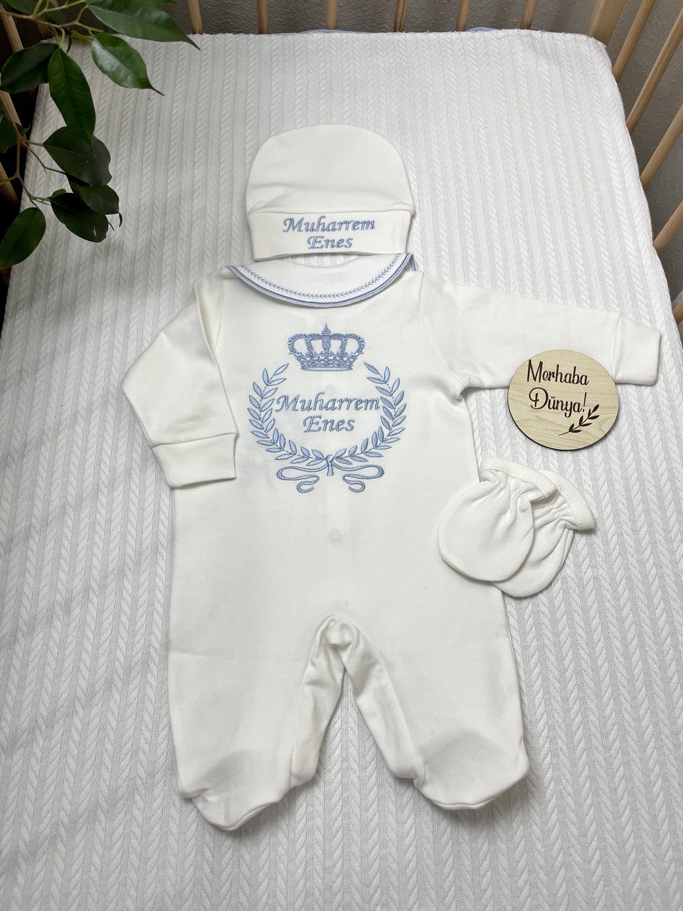 Hastane Çıkışı Seti, bebeğinizin ilk günlerinde ihtiyaç duyduğu parçaları bir araya getirir. Konforlu, şık ve kullanıma hazırdır.