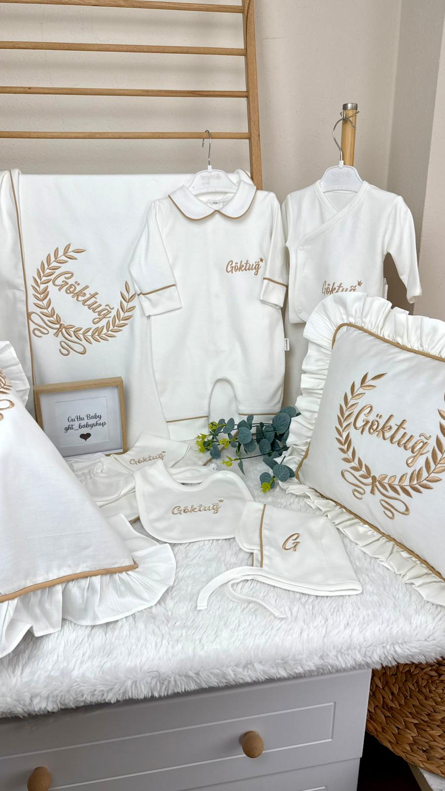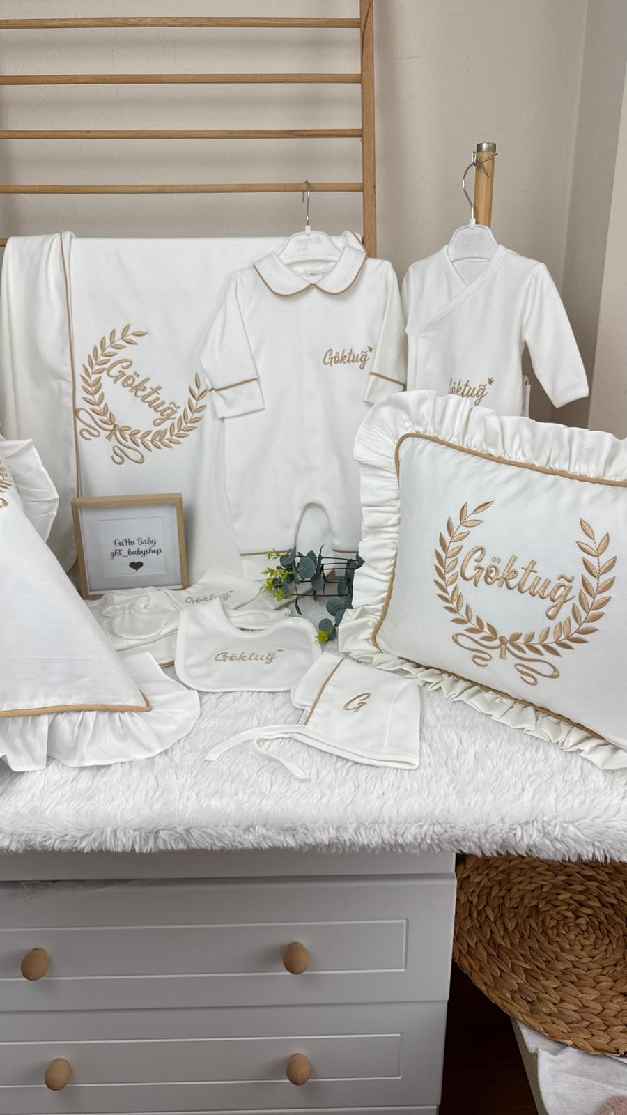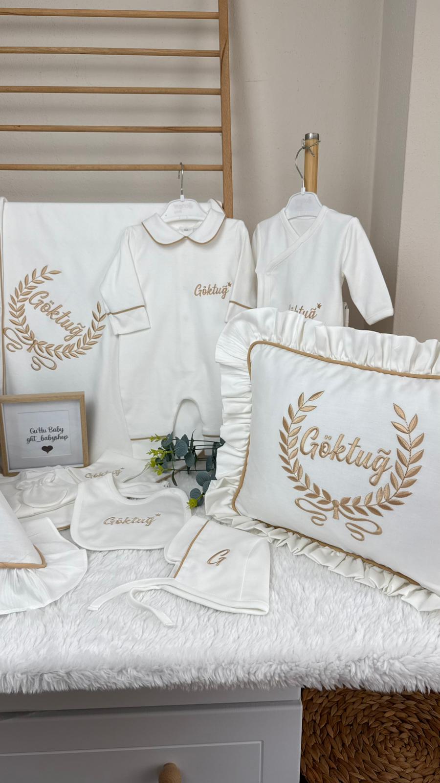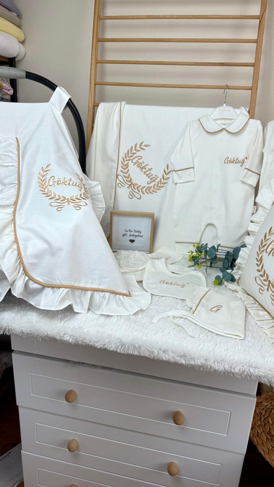 Hastane Çıkışı Seti, bebeğinizin ilk günlerinde ihtiyaç duyduğu parçaları bir araya getirir. Konforlu, şık ve kullanıma hazırdır.