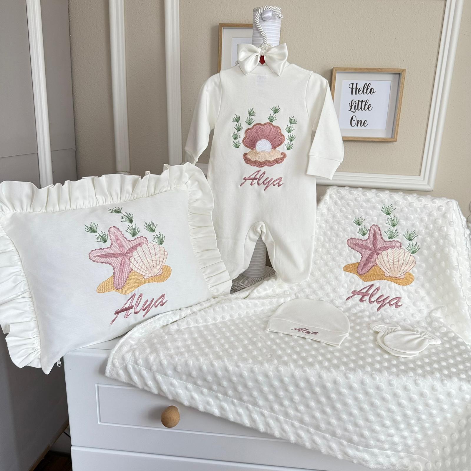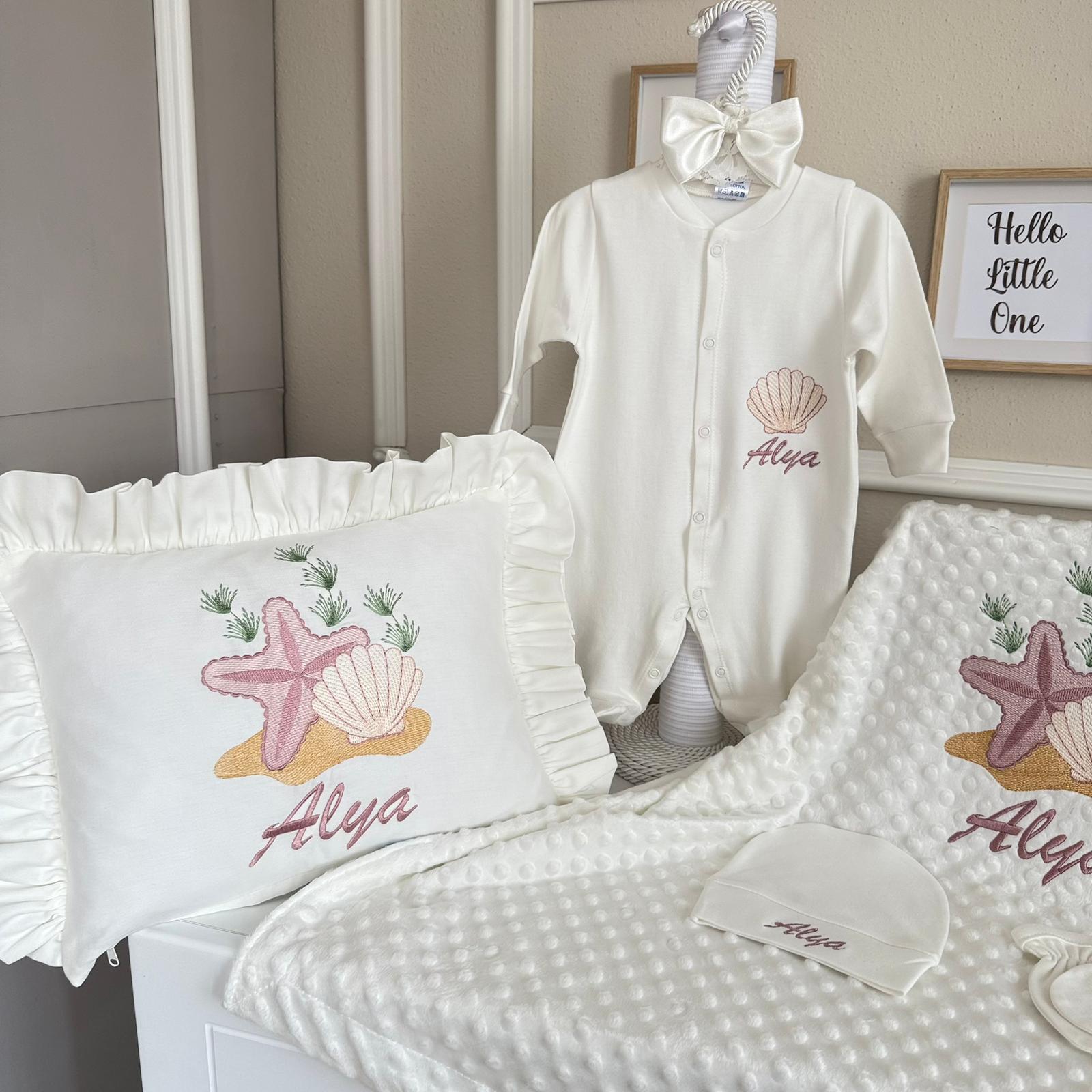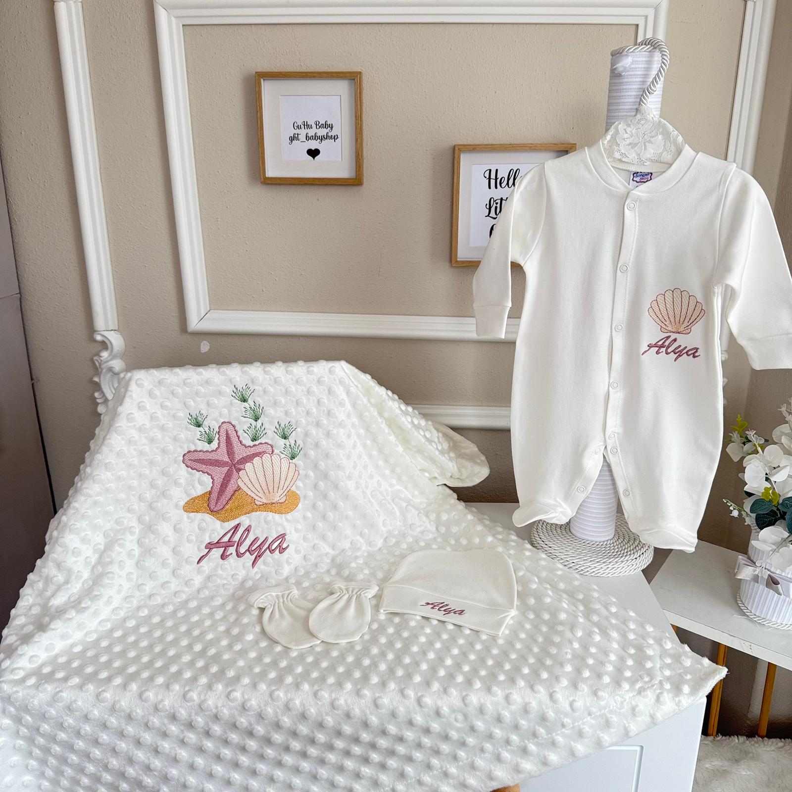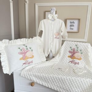 Hastane Çıkışı Seti, bebeğinizin ilk günlerinde ihtiyaç duyduğu parçaları bir araya getirir. Konforlu, şık ve kullanıma hazırdır.