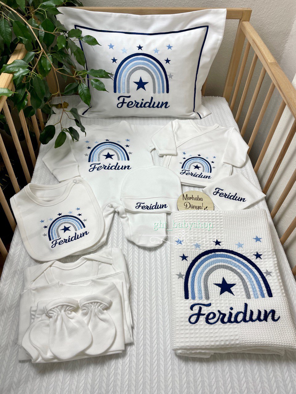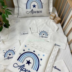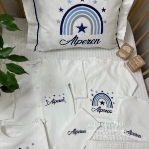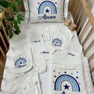 Hastane Çıkışı Seti, bebeğinizin ilk günlerinde ihtiyaç duyduğu parçaları bir araya getirir. Konforlu, şık ve kullanıma hazırdır.