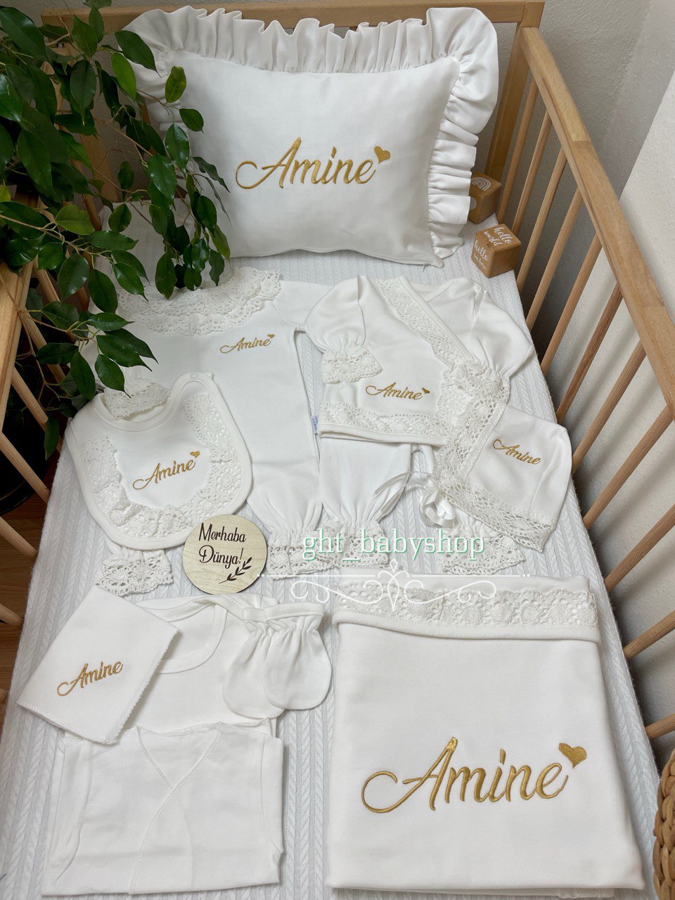 Hastane Çıkışı Seti, bebeğinizin ilk günlerinde ihtiyaç duyduğu parçaları bir araya getirir. Konforlu, şık ve kullanıma hazırdır.