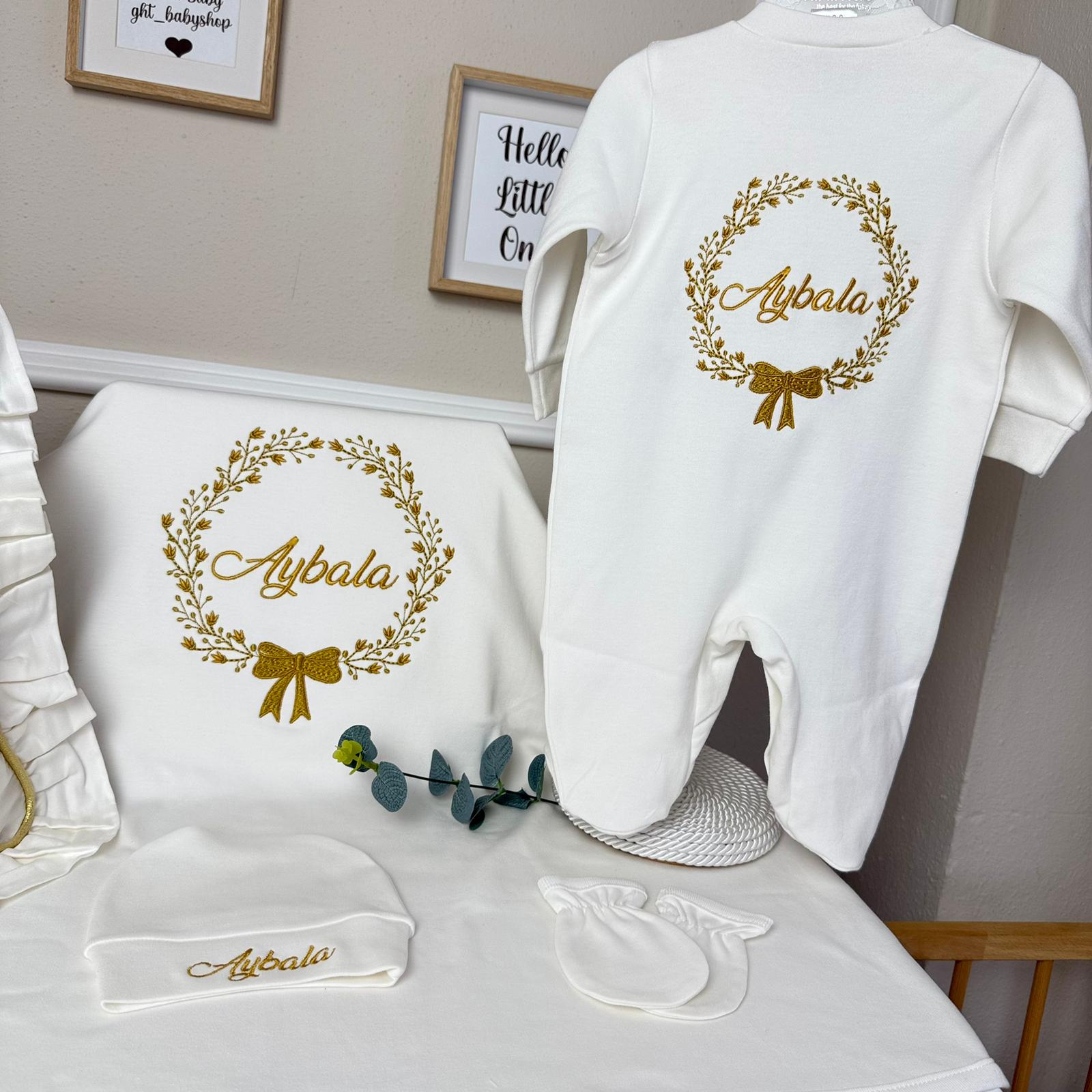 Hastane Çıkışı Seti, bebeğinizin ilk günlerinde ihtiyaç duyduğu parçaları bir araya getirir. Konforlu, şık ve kullanıma hazırdır.