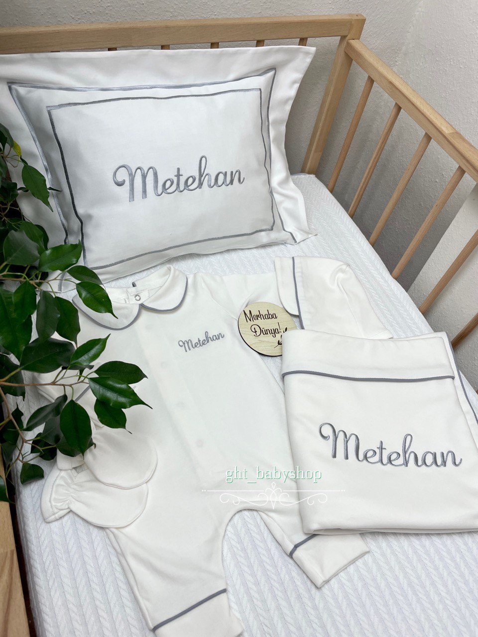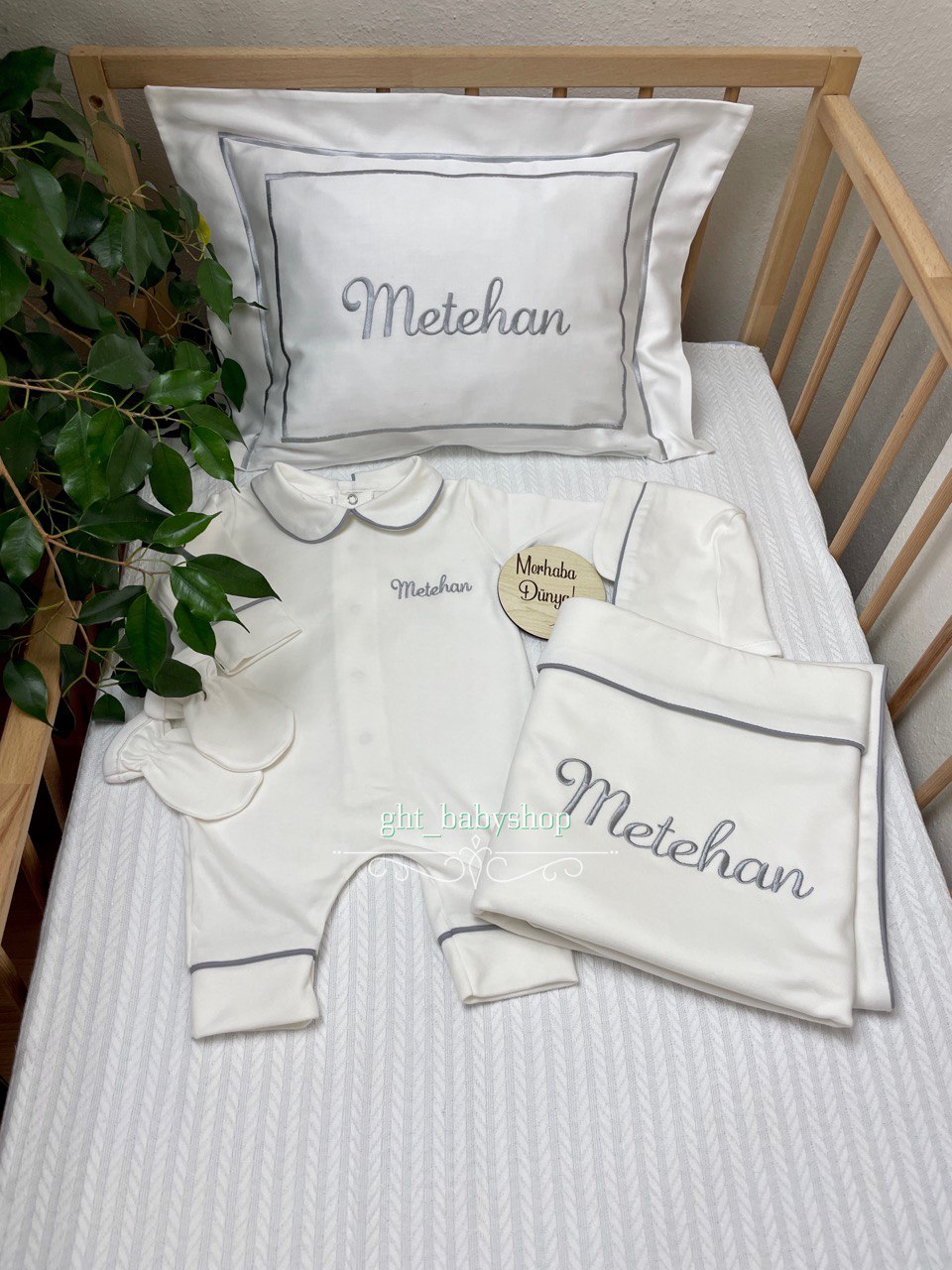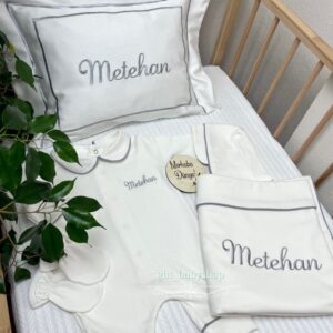 Hastane Çıkışı Seti, bebeğinizin ilk günlerinde ihtiyaç duyduğu parçaları bir araya getirir. Konforlu, şık ve kullanıma hazırdır.