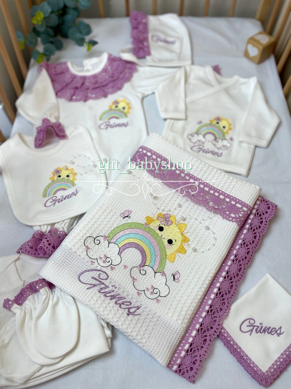 Hastane Çıkışı Seti, bebeğinizin ilk günlerinde ihtiyaç duyduğu parçaları bir araya getirir. Konforlu, şık ve kullanıma hazırdır.