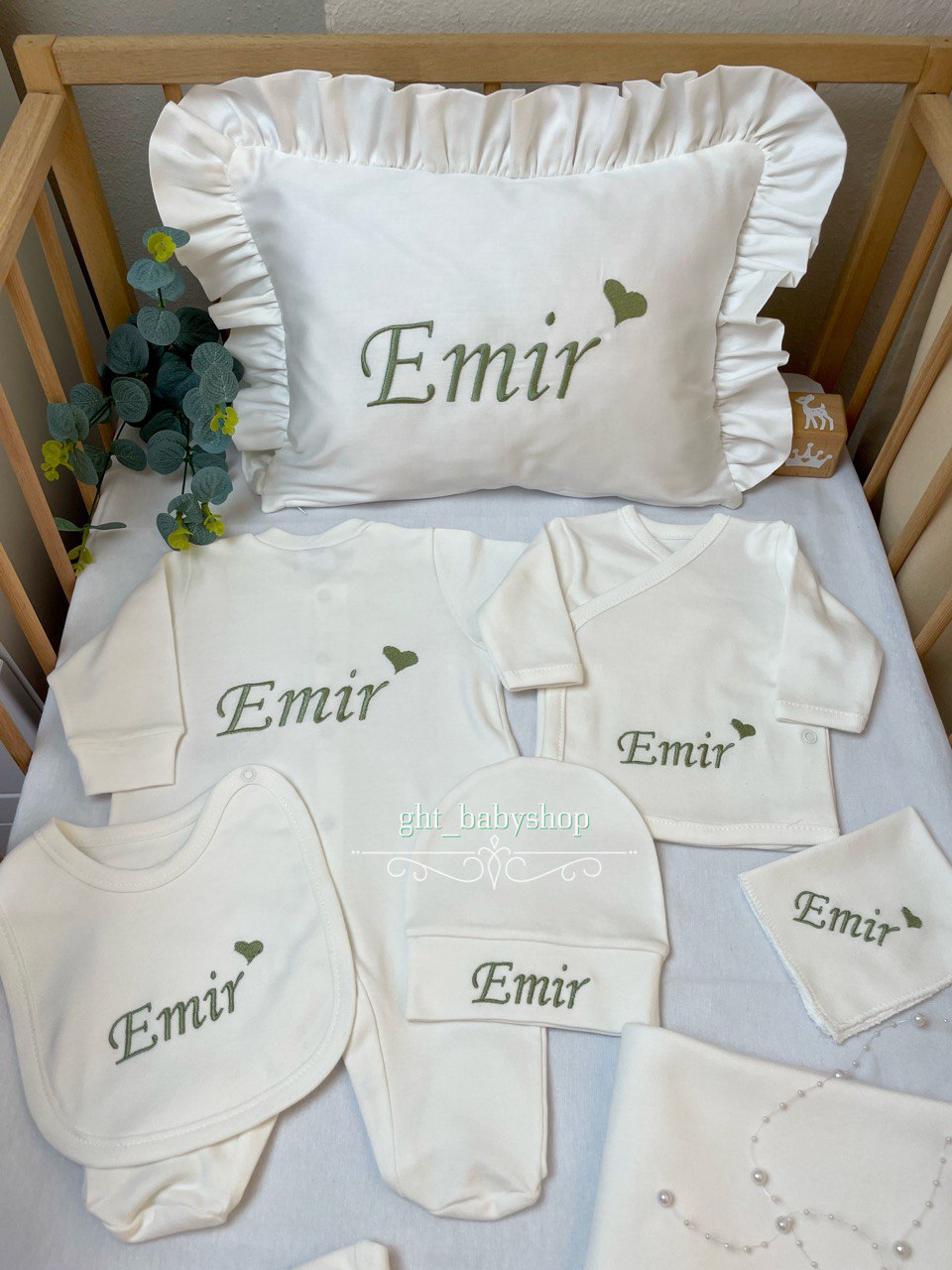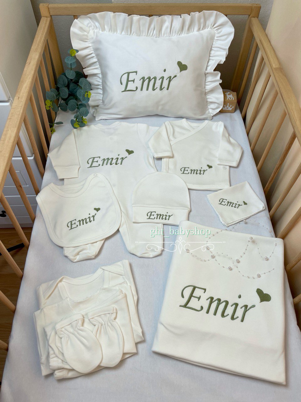 Hastane Çıkışı Seti, bebeğinizin ilk günlerinde ihtiyaç duyduğu parçaları bir araya getirir. Konforlu, şık ve kullanıma hazırdır.