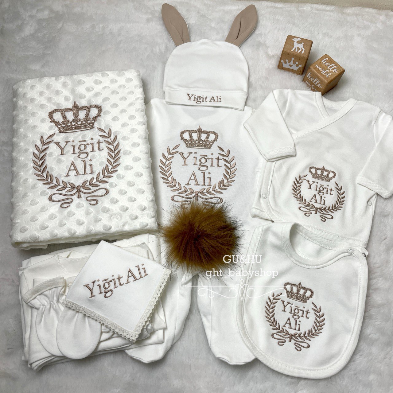 Hastane Çıkışı Seti, bebeğinizin ilk günlerinde ihtiyaç duyduğu parçaları bir araya getirir. Konforlu, şık ve kullanıma hazırdır.