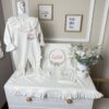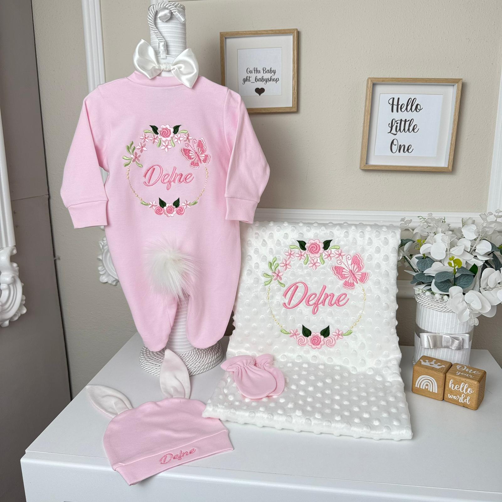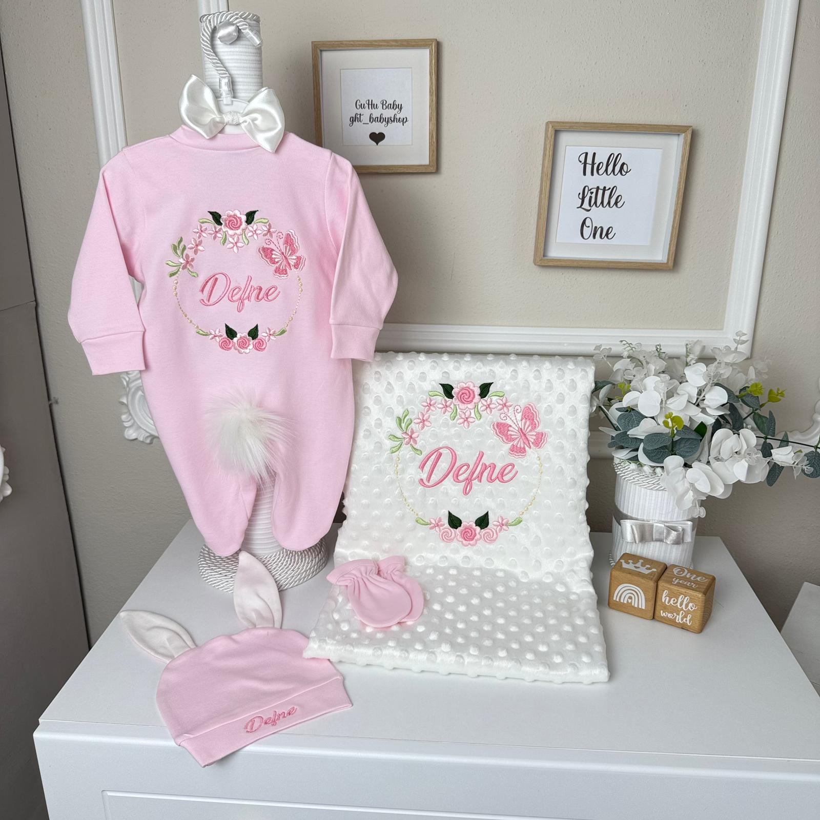 Hastane Çıkışı Seti, bebeğinizin ilk günlerinde ihtiyaç duyduğu parçaları bir araya getirir. Konforlu, şık ve kullanıma hazırdır.