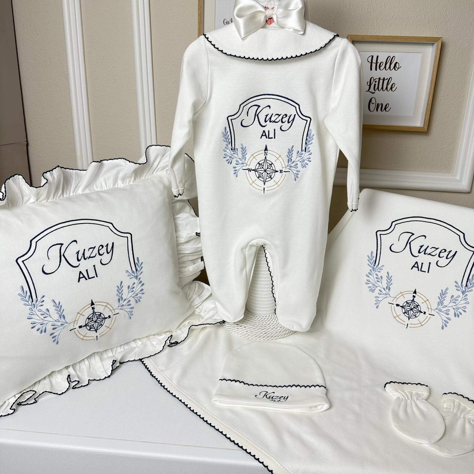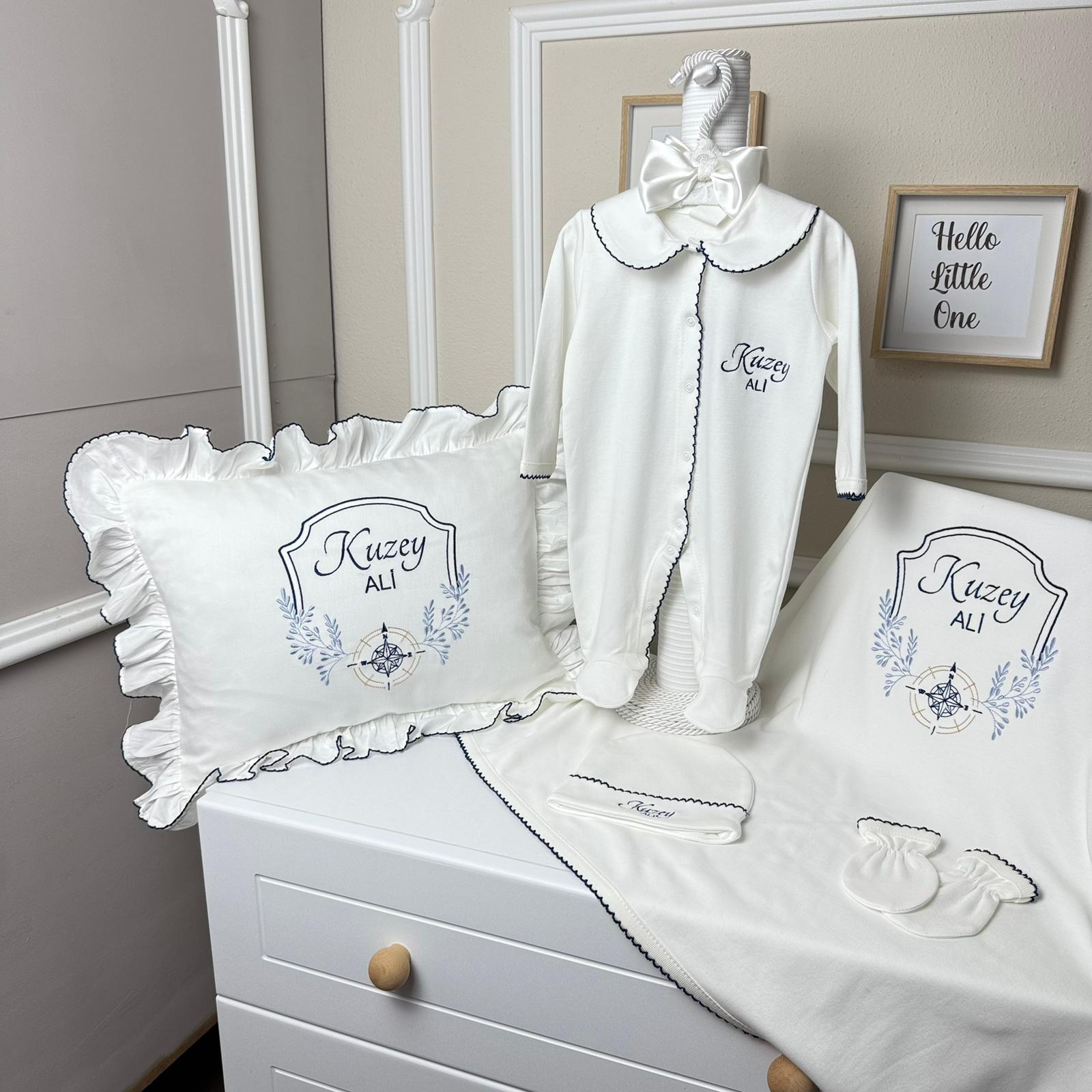 Hastane Çıkışı Seti, bebeğinizin ilk günlerinde ihtiyaç duyduğu parçaları bir araya getirir. Konforlu, şık ve kullanıma hazırdır.