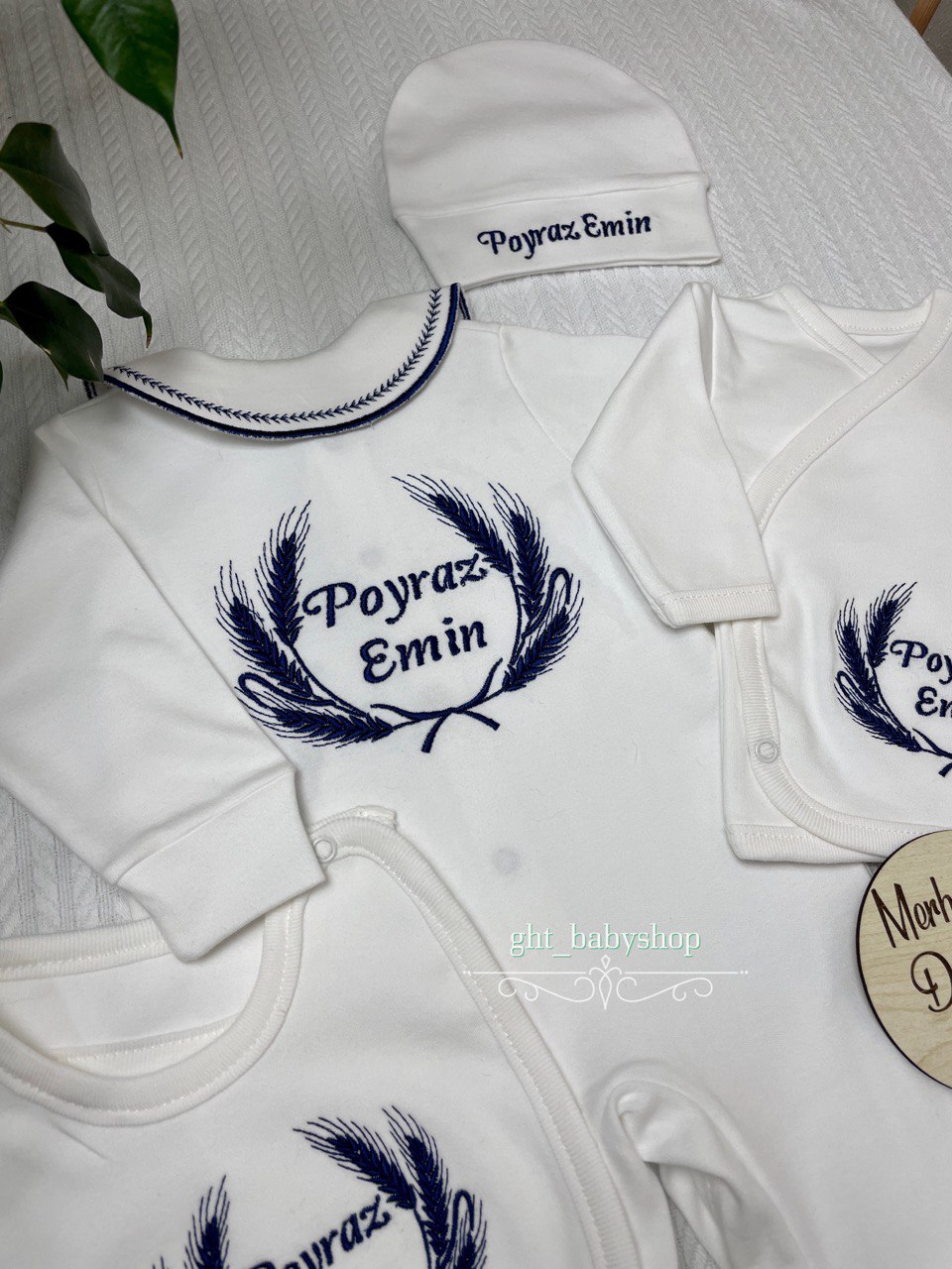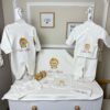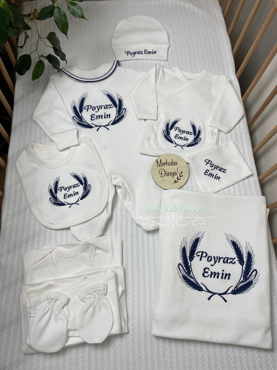Hastane Çıkışı Seti, bebeğinizin ilk günlerinde ihtiyaç duyduğu parçaları bir araya getirir. Konforlu, şık ve kullanıma hazırdır.