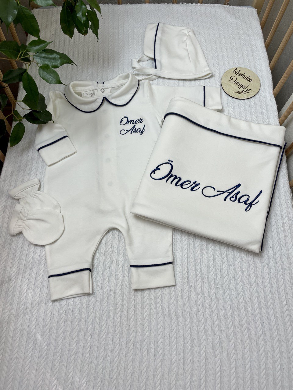 Hastane Çıkışı Seti, bebeğinizin ilk günlerinde ihtiyaç duyduğu parçaları bir araya getirir. Konforlu, şık ve kullanıma hazırdır.