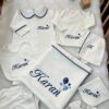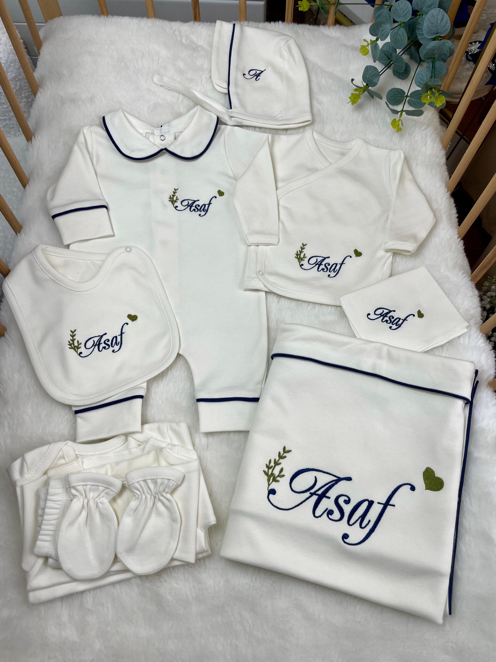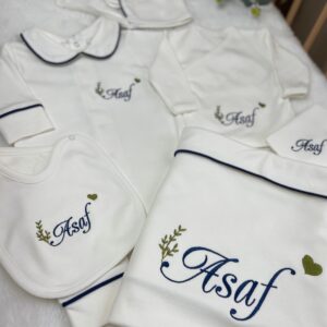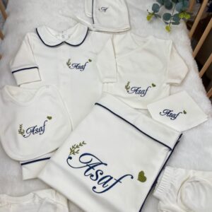 Hastane Çıkışı Seti, bebeğinizin ilk günlerinde ihtiyaç duyduğu parçaları bir araya getirir. Konforlu, şık ve kullanıma hazırdır.