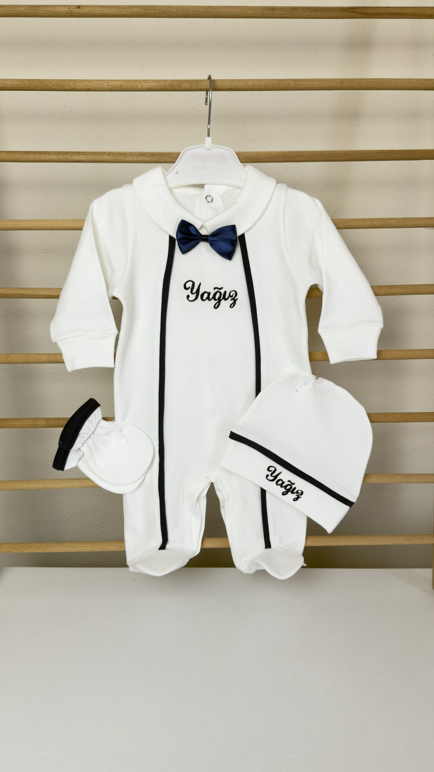 Hastane Çıkışı Seti, bebeğinizin ilk günlerinde ihtiyaç duyduğu parçaları bir araya getirir. Konforlu, şık ve kullanıma hazırdır.