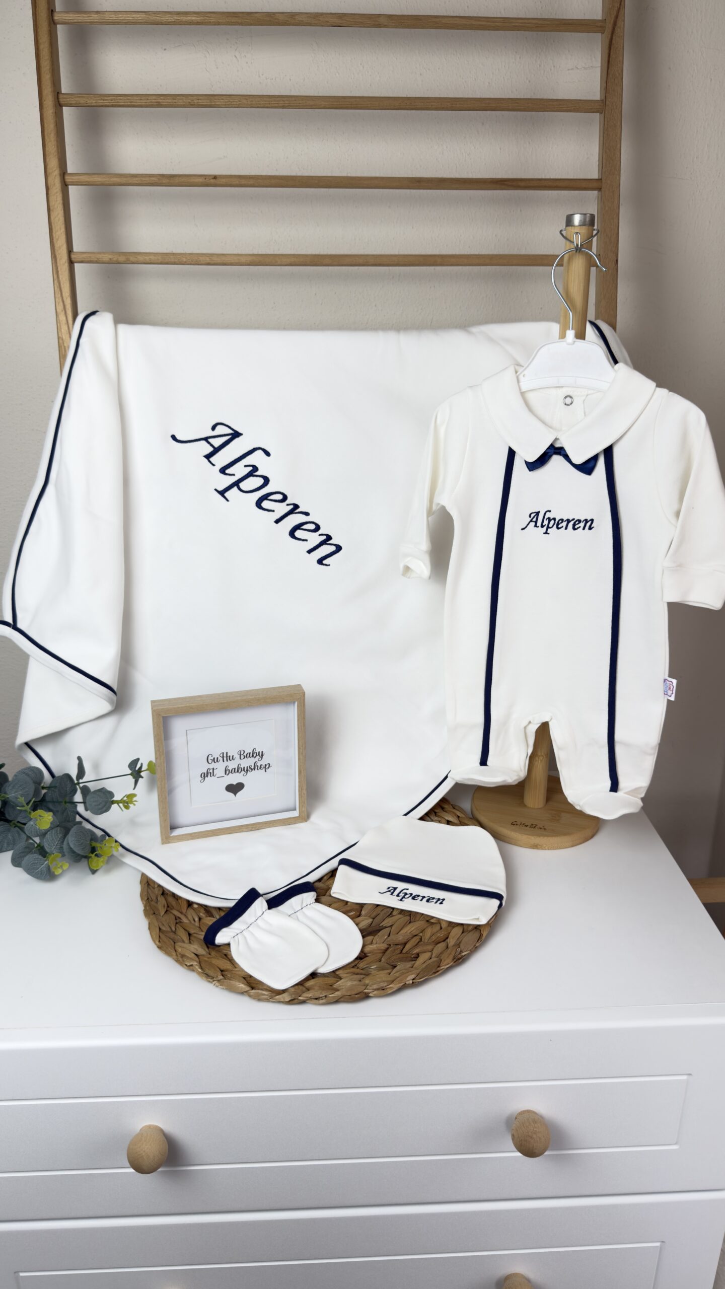 Hastane Çıkışı Seti, bebeğinizin ilk günlerinde ihtiyaç duyduğu parçaları bir araya getirir. Konforlu, şık ve kullanıma hazırdır.