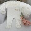 Hastane Çıkışı Seti, bebeğinizin ilk günlerinde ihtiyaç duyduğu parçaları bir araya getirir. Konforlu, şık ve kullanıma hazırdır.