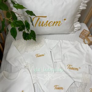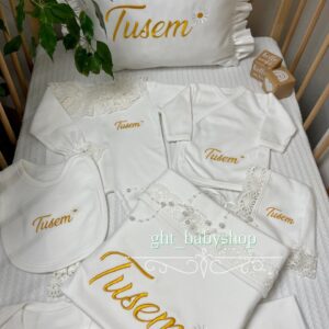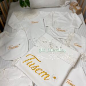 Hastane Çıkışı Seti, bebeğinizin ilk günlerinde ihtiyaç duyduğu parçaları bir araya getirir. Konforlu, şık ve kullanıma hazırdır.