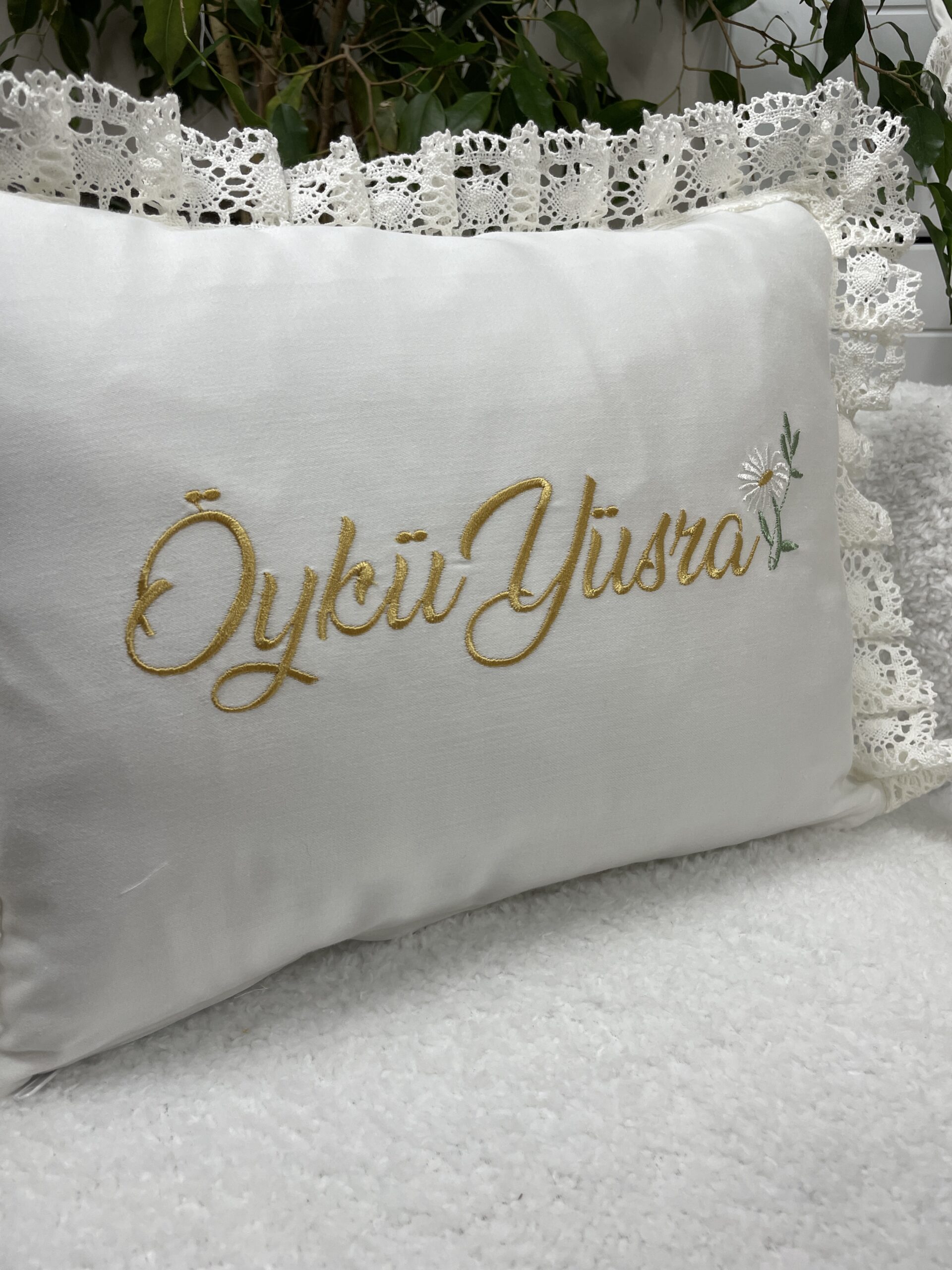 Bebek Takı Yastığı, yumuşak dokusu ve zarif görünümüyle doğum, mevlüt ve hastane çıkışı organizasyonları için ideal bir tamamlayıcıdır.