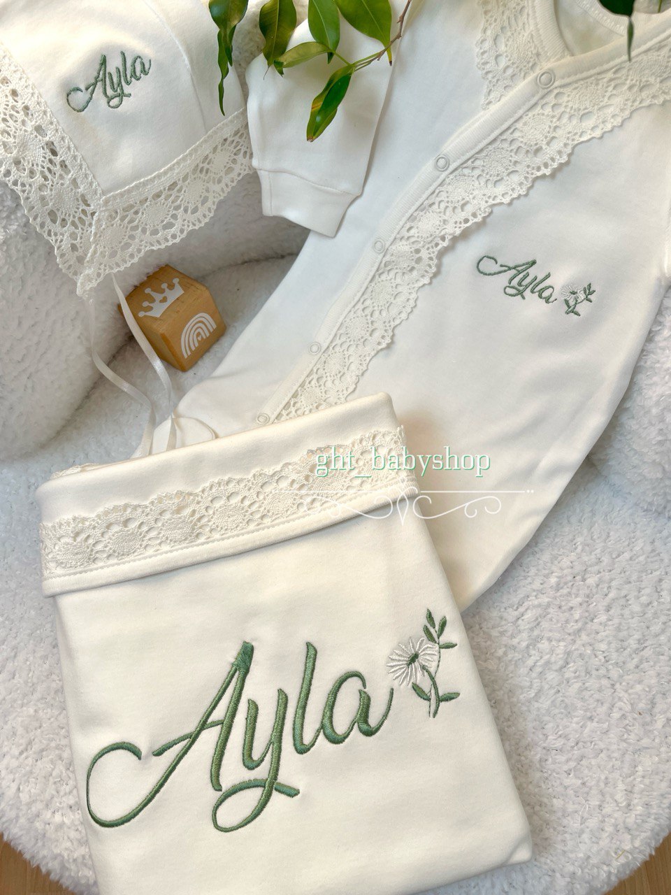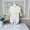 Hastane Çıkışı Seti, bebeğinizin ilk günlerinde ihtiyaç duyduğu parçaları bir araya getirir. Konforlu, şık ve kullanıma hazırdır.