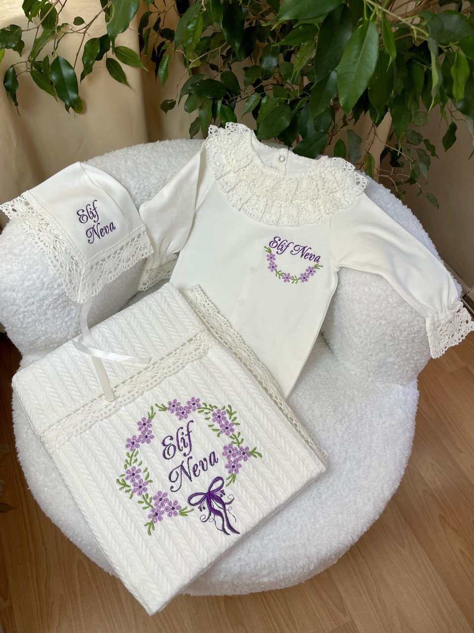 Hastane Çıkışı Seti, bebeğinizin ilk günlerinde ihtiyaç duyduğu parçaları bir araya getirir. Konforlu, şık ve kullanıma hazırdır.