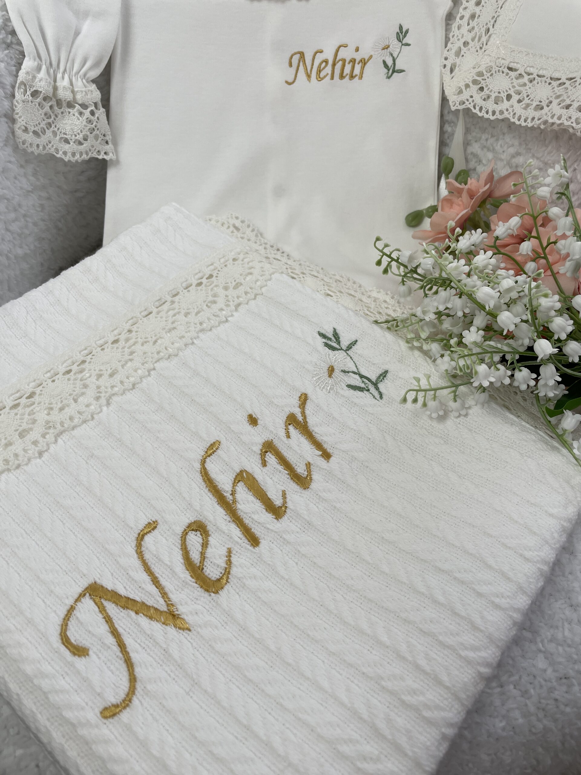 Hastane Çıkışı Seti, bebeğinizin ilk günlerinde ihtiyaç duyduğu parçaları bir araya getirir. Konforlu, şık ve kullanıma hazırdır.