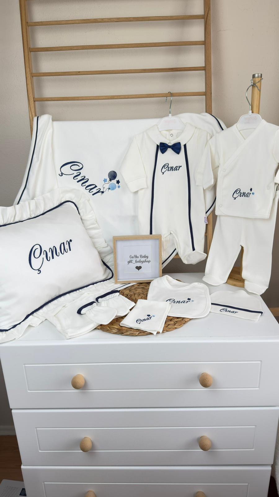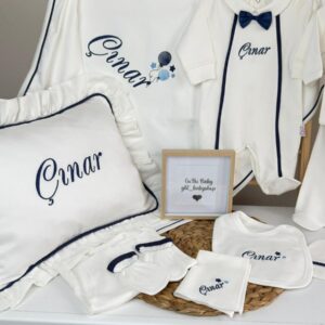 Hastane Çıkışı Seti, bebeğinizin ilk günlerinde ihtiyaç duyduğu parçaları bir araya getirir. Konforlu, şık ve kullanıma hazırdır.