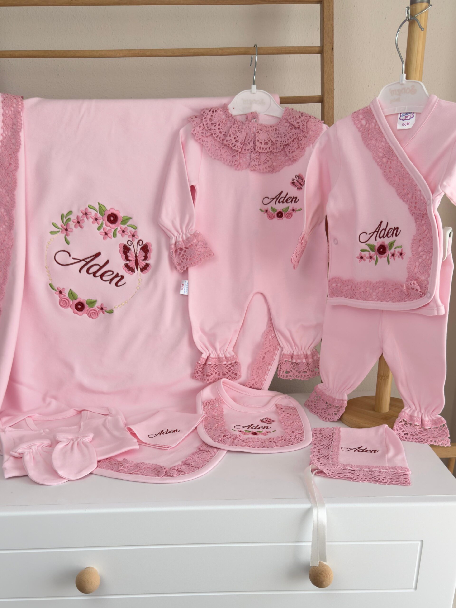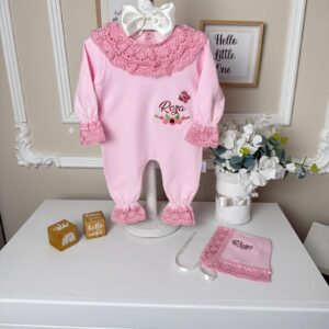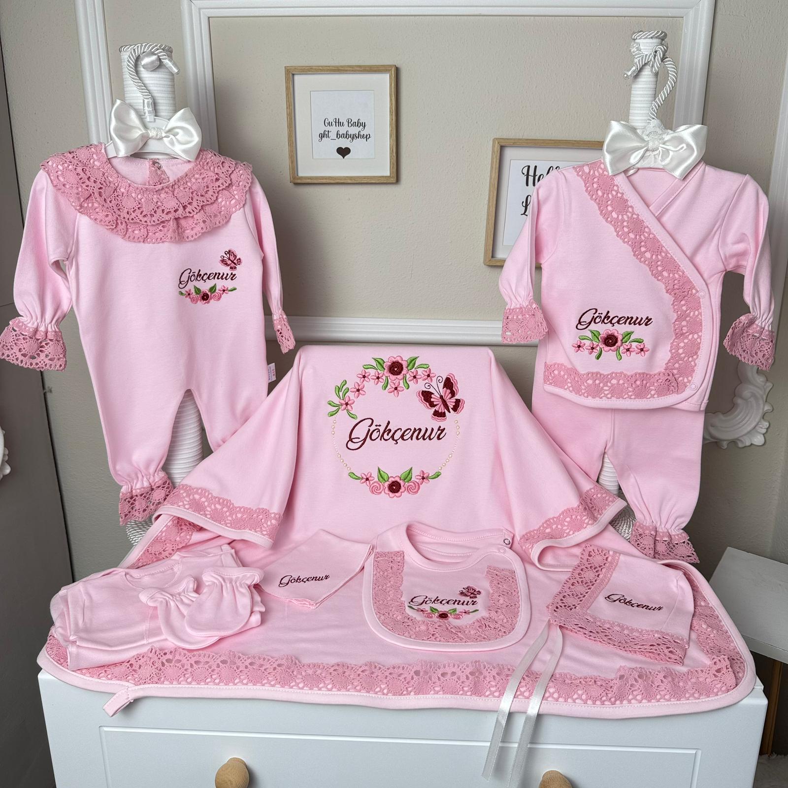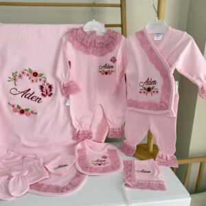 Hastane Çıkışı Seti, bebeğinizin ilk günlerinde ihtiyaç duyduğu parçaları bir araya getirir. Konforlu, şık ve kullanıma hazırdır.