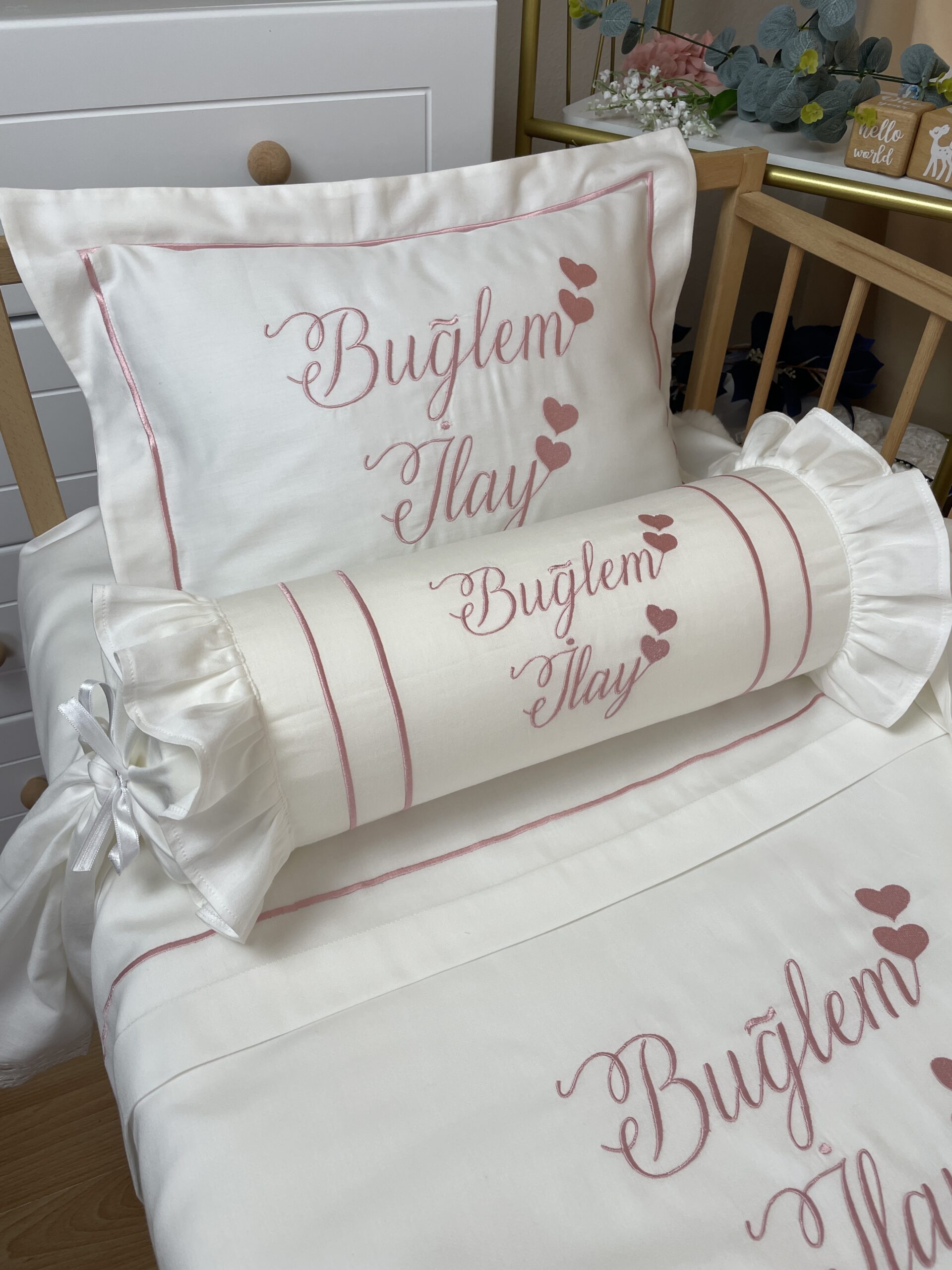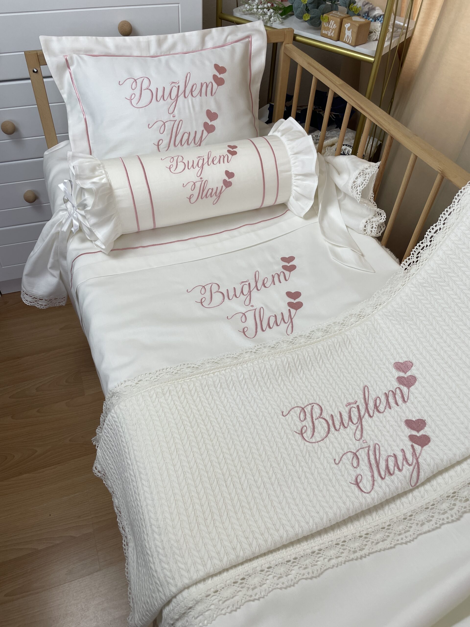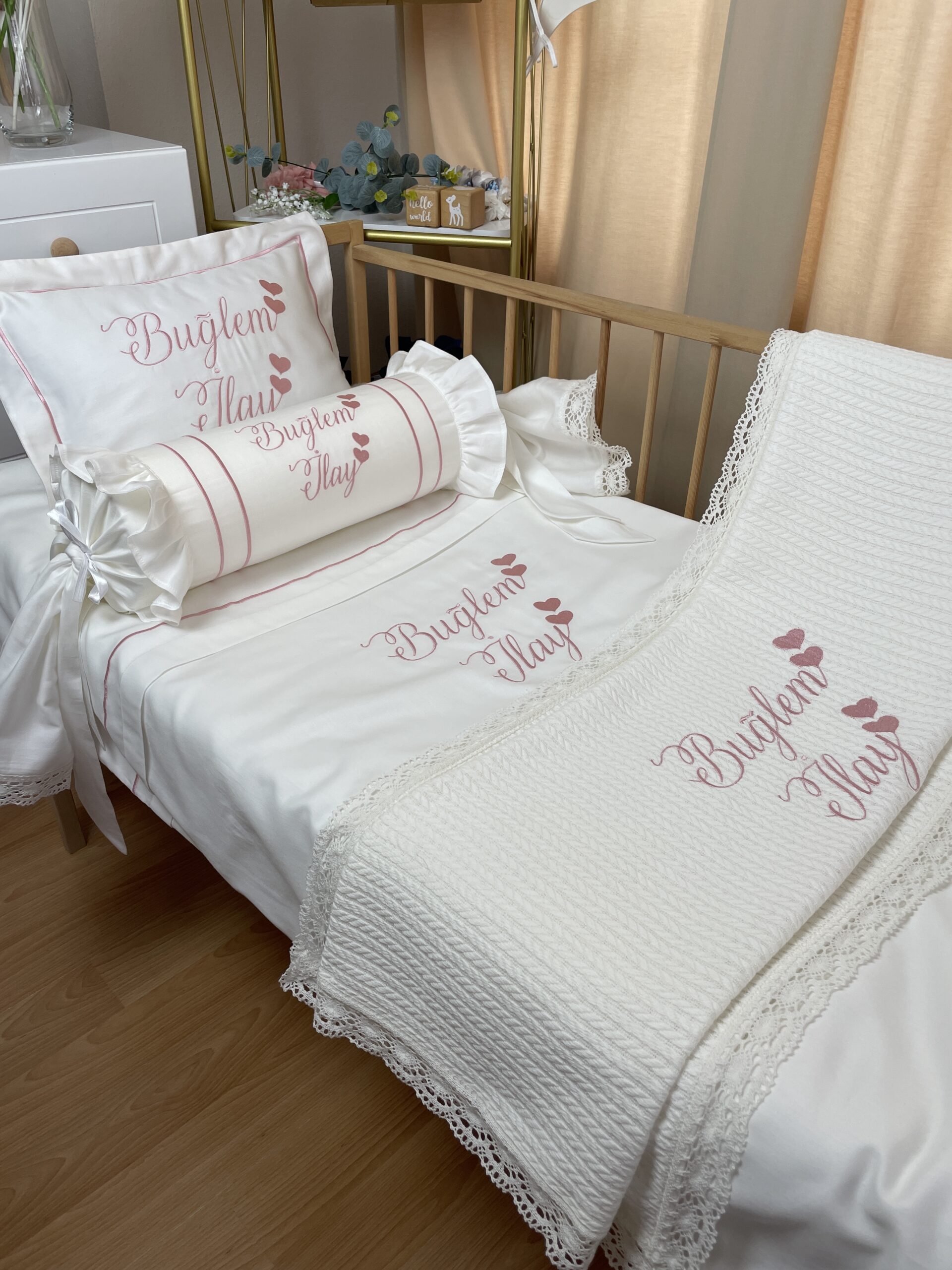 yastık kılıfı 35×45 (1 adet)(Görseldeki gibi anne isteği üzerine extra şeker yastık ve pike eklenebilir)