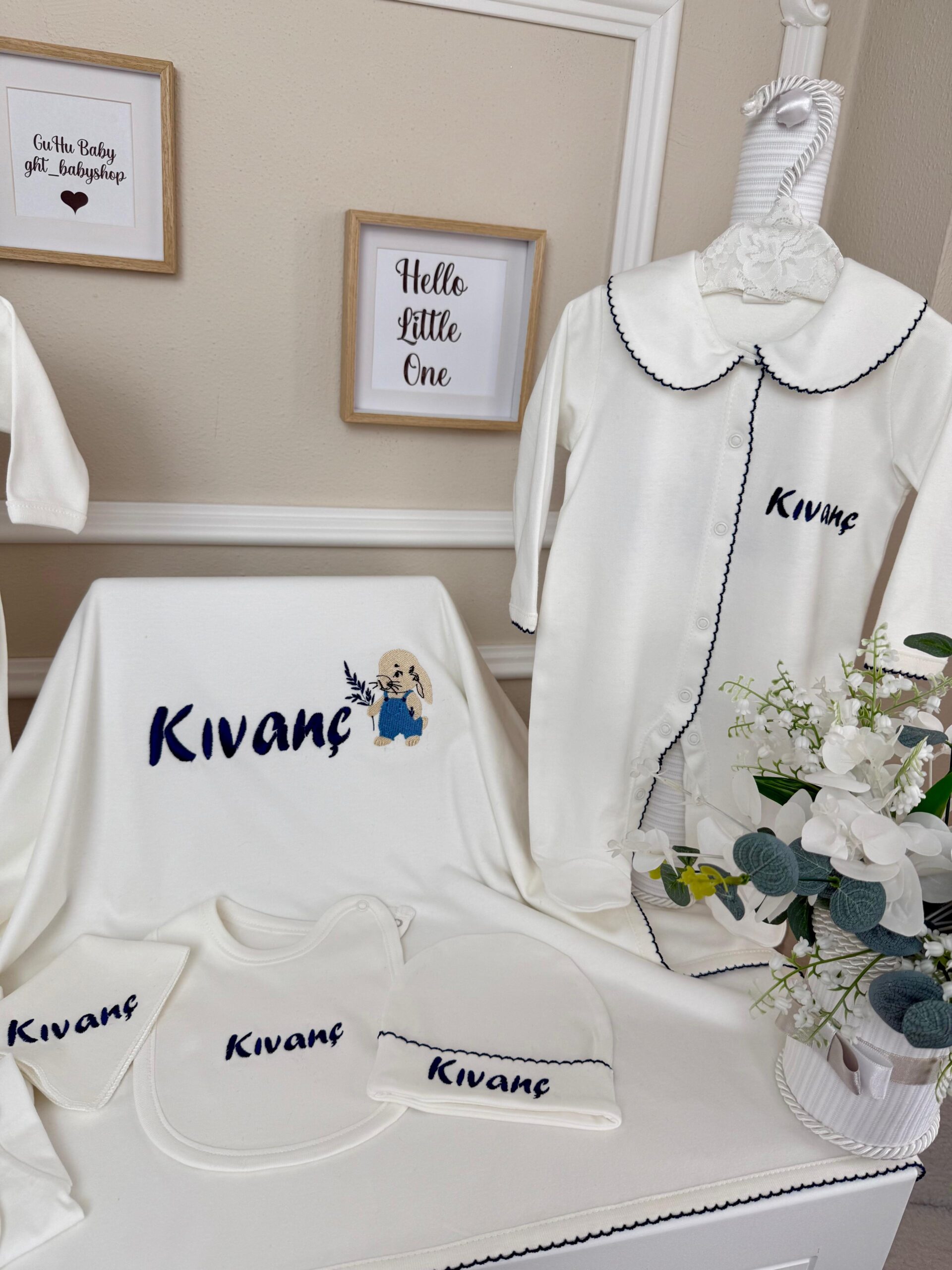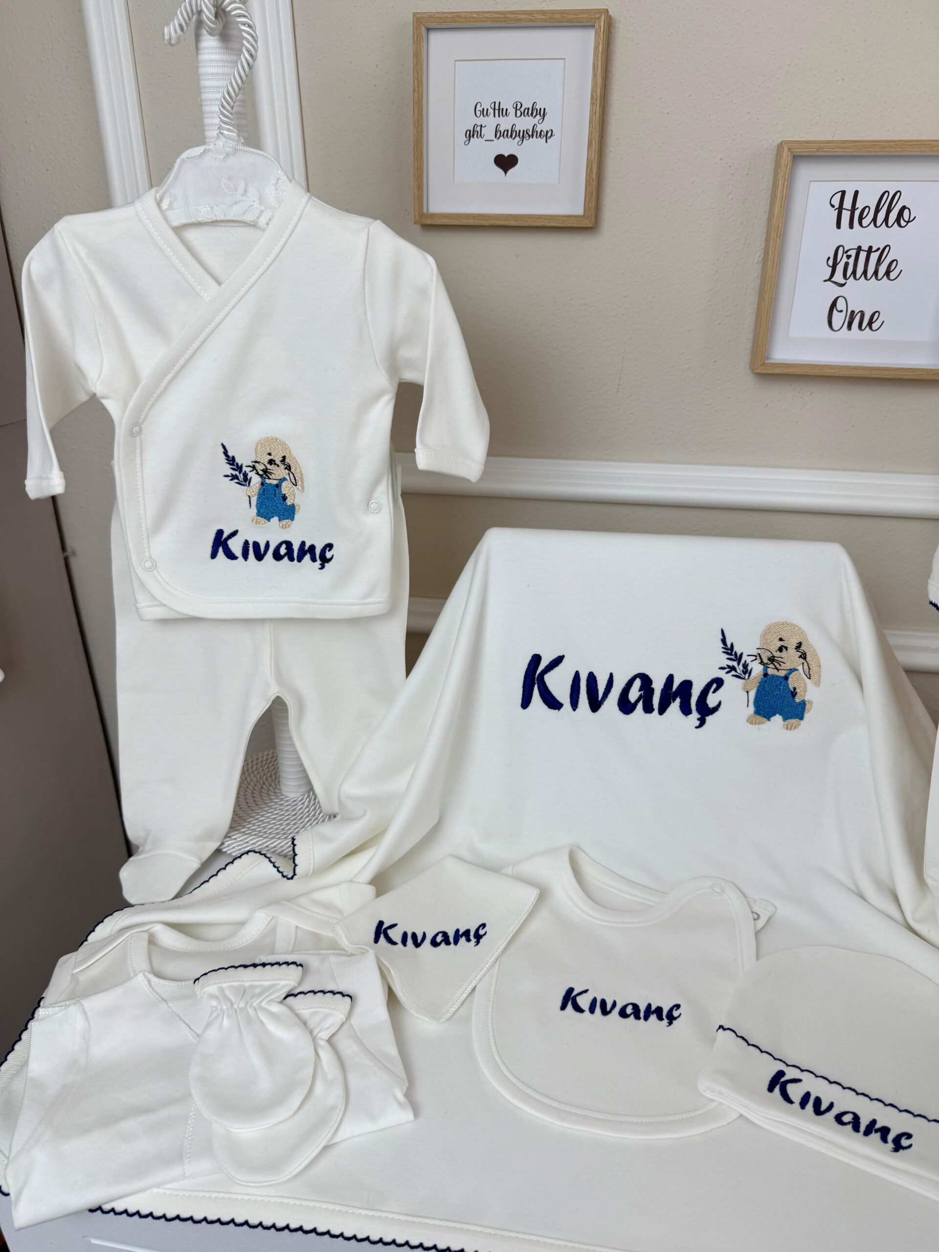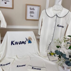 İlk yorum yapan siz olun “Salopetli tavşan desenli lacivert oyalı 10lu set”