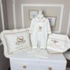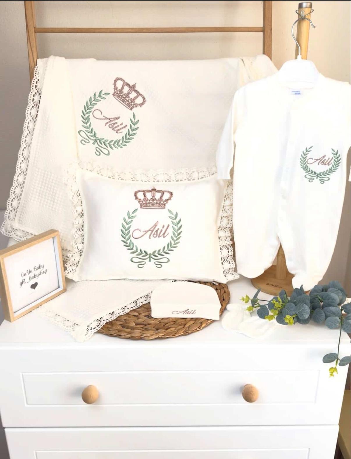 Hastane Çıkışı Seti, bebeğinizin ilk günlerinde ihtiyaç duyduğu parçaları bir araya getirir. Konforlu, şık ve kullanıma hazırdır.