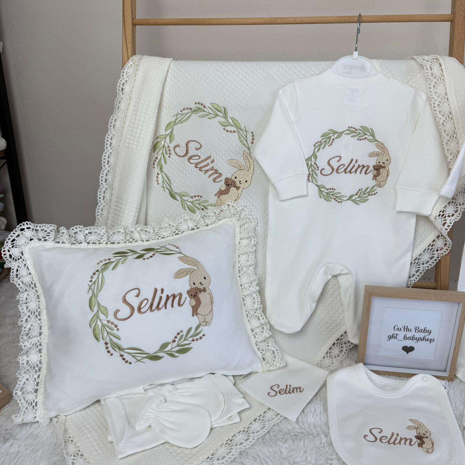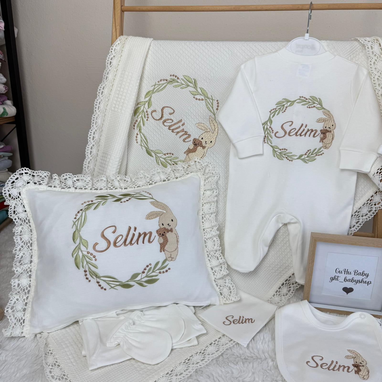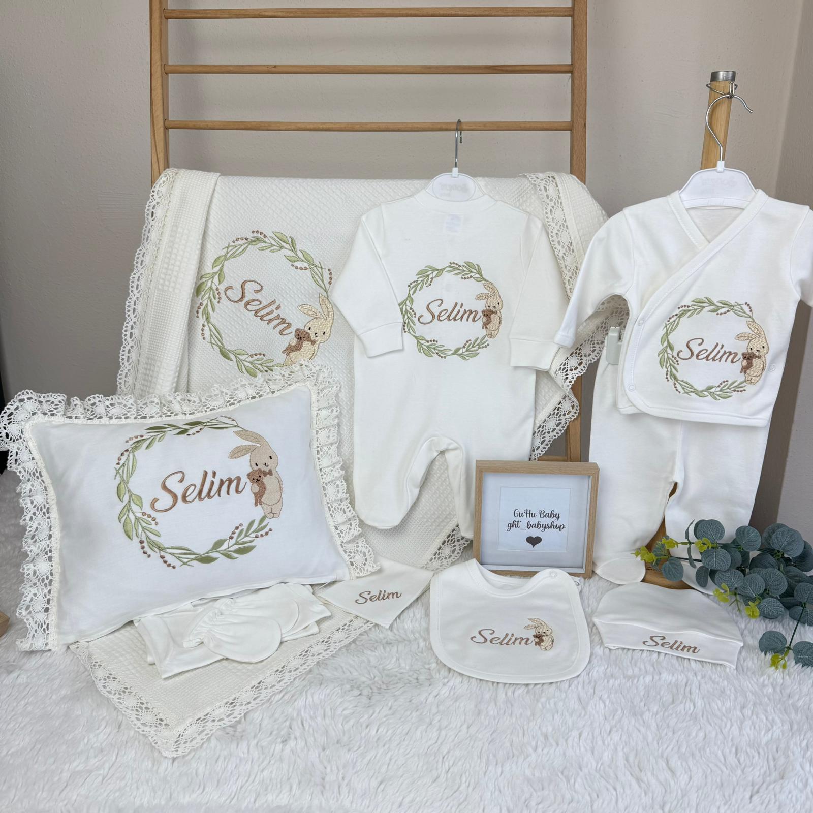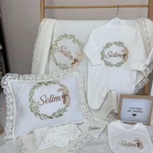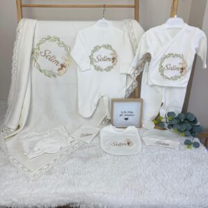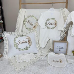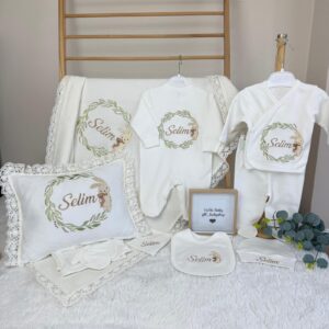 Hastane Çıkışı Seti, bebeğinizin ilk günlerinde ihtiyaç duyduğu parçaları bir araya getirir. Konforlu, şık ve kullanıma hazırdır.