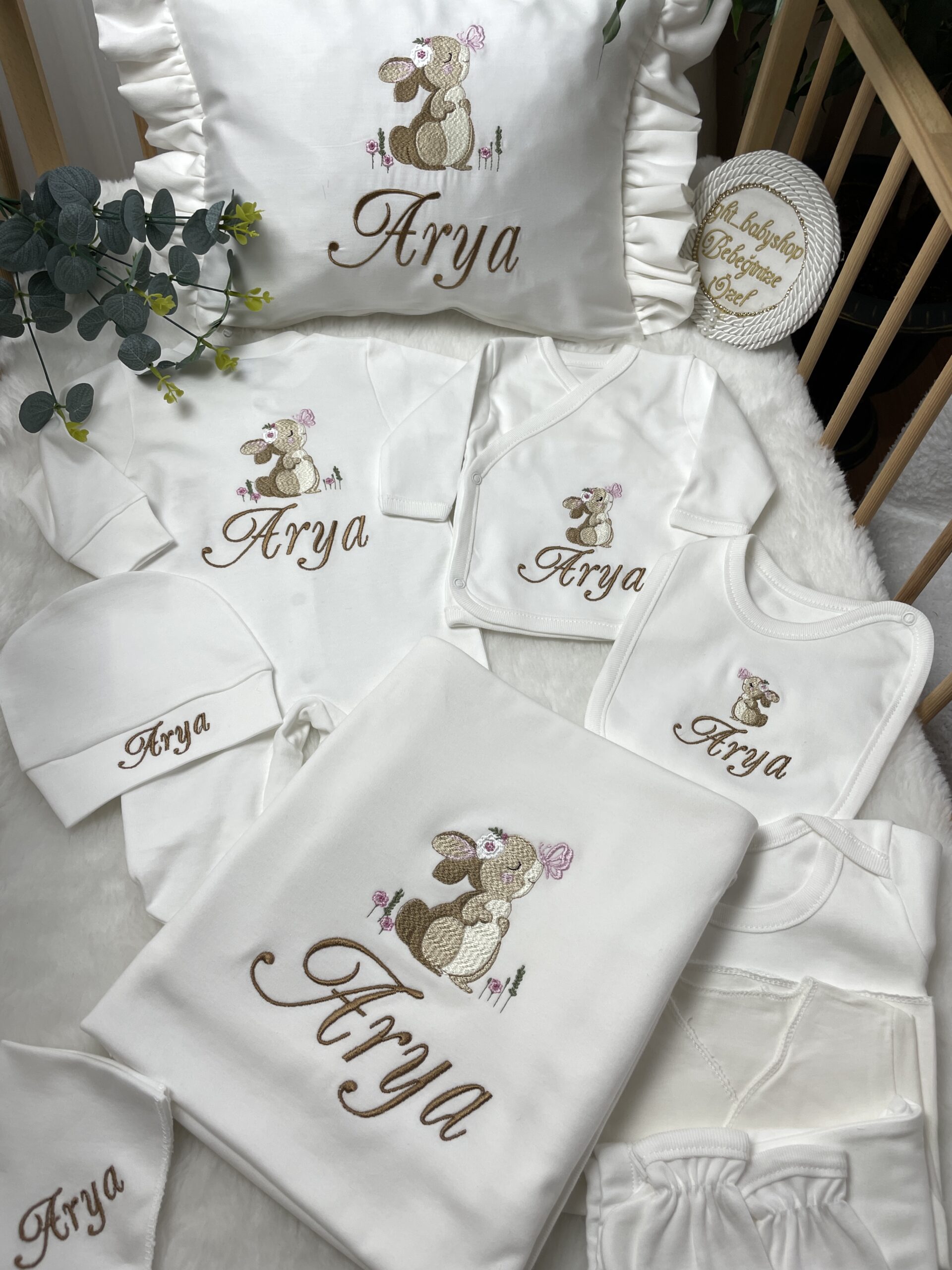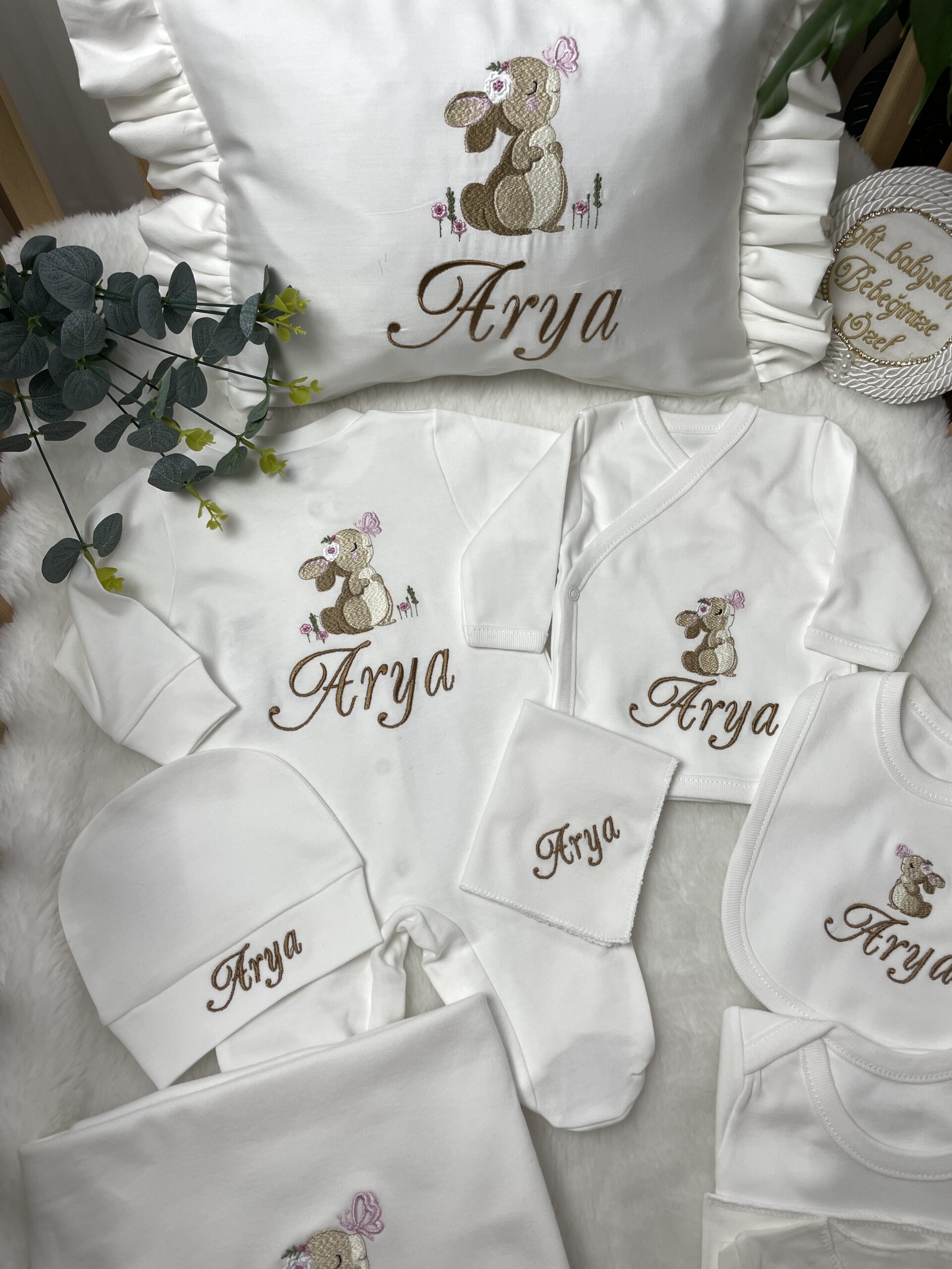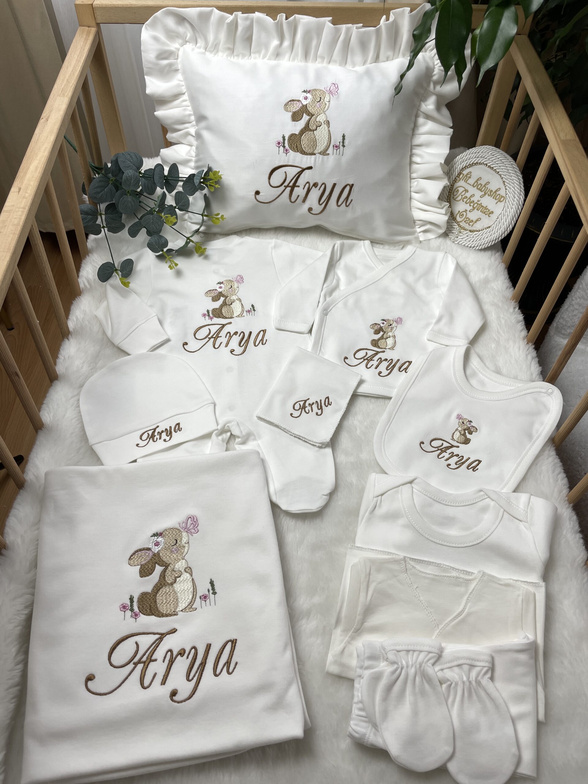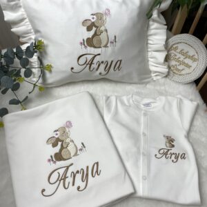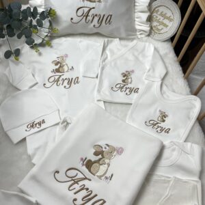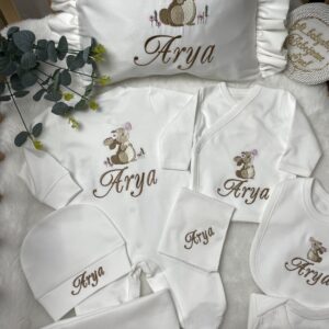 Hastane Çıkışı Seti, bebeğinizin ilk günlerinde ihtiyaç duyduğu parçaları bir araya getirir. Konforlu, şık ve kullanıma hazırdır.