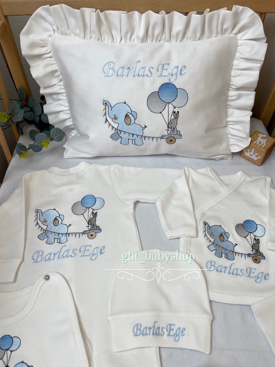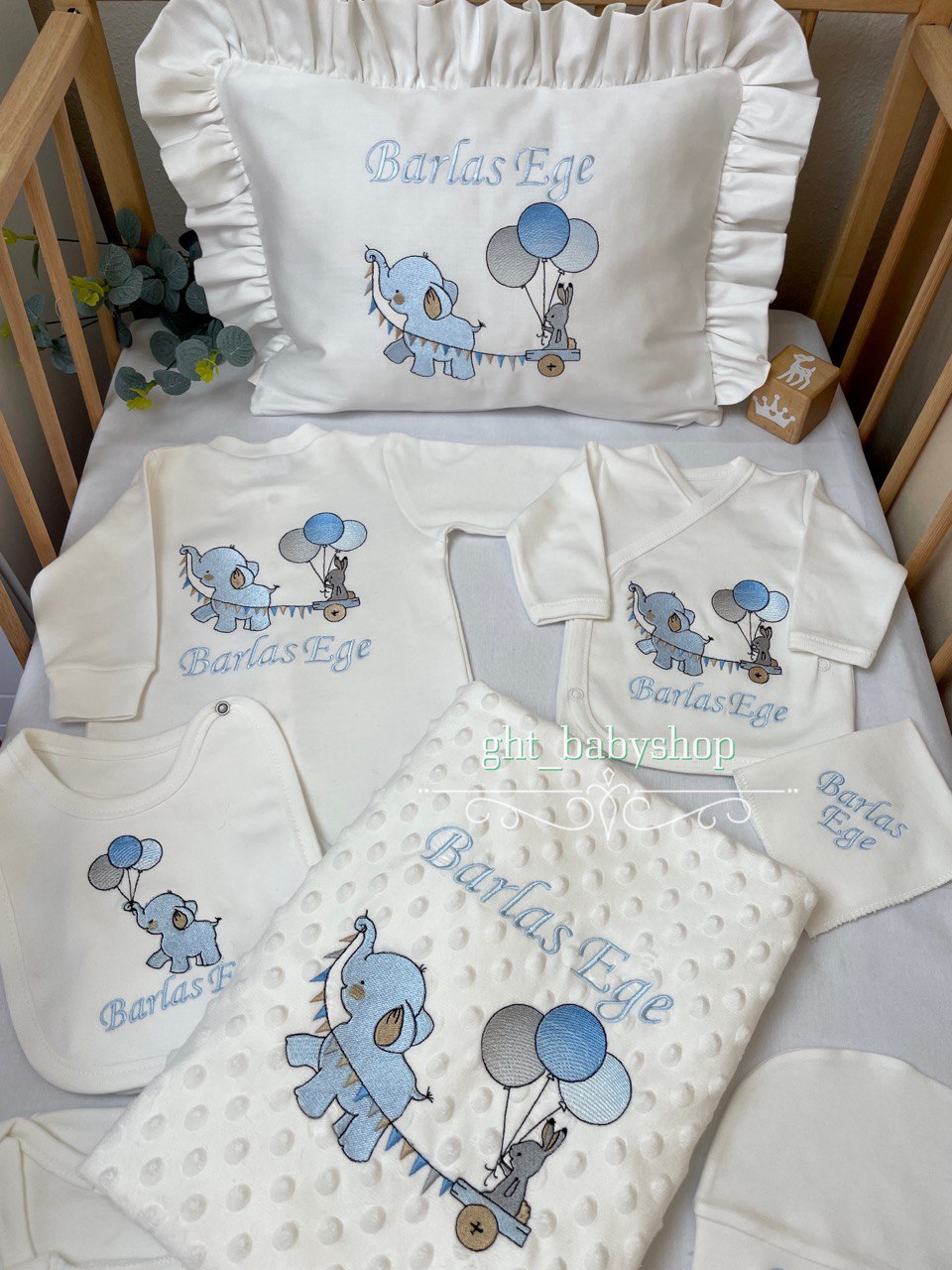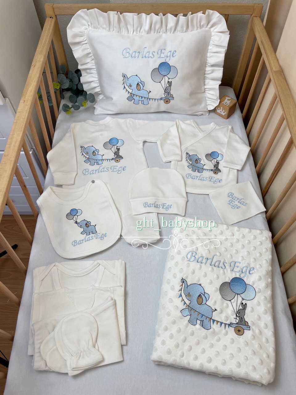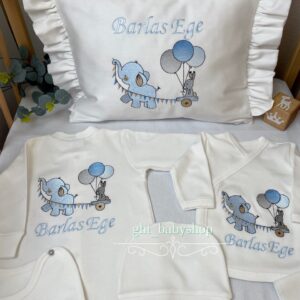 Hastane Çıkışı Seti, bebeğinizin ilk günlerinde ihtiyaç duyduğu parçaları bir araya getirir. Konforlu, şık ve kullanıma hazırdır.